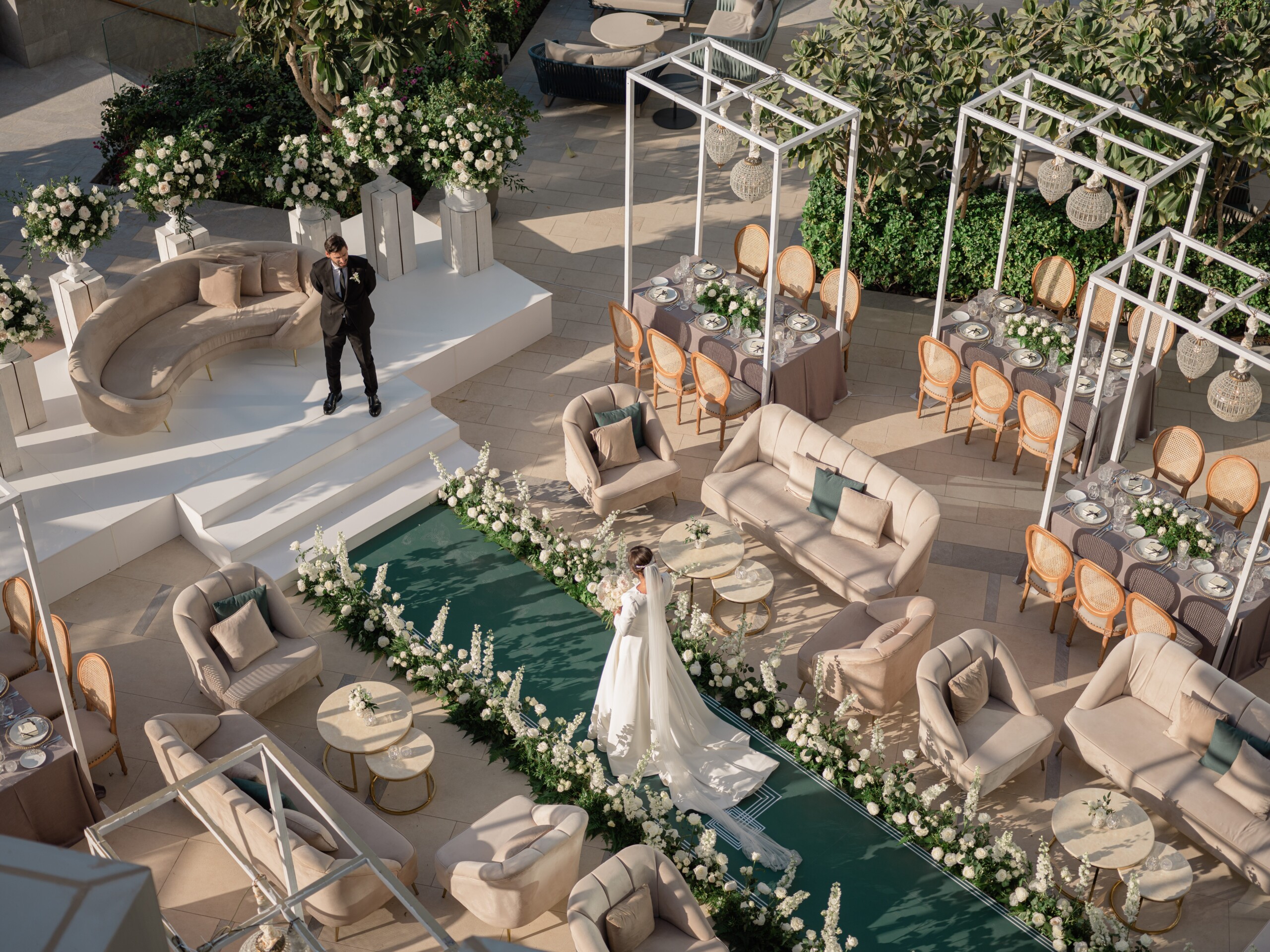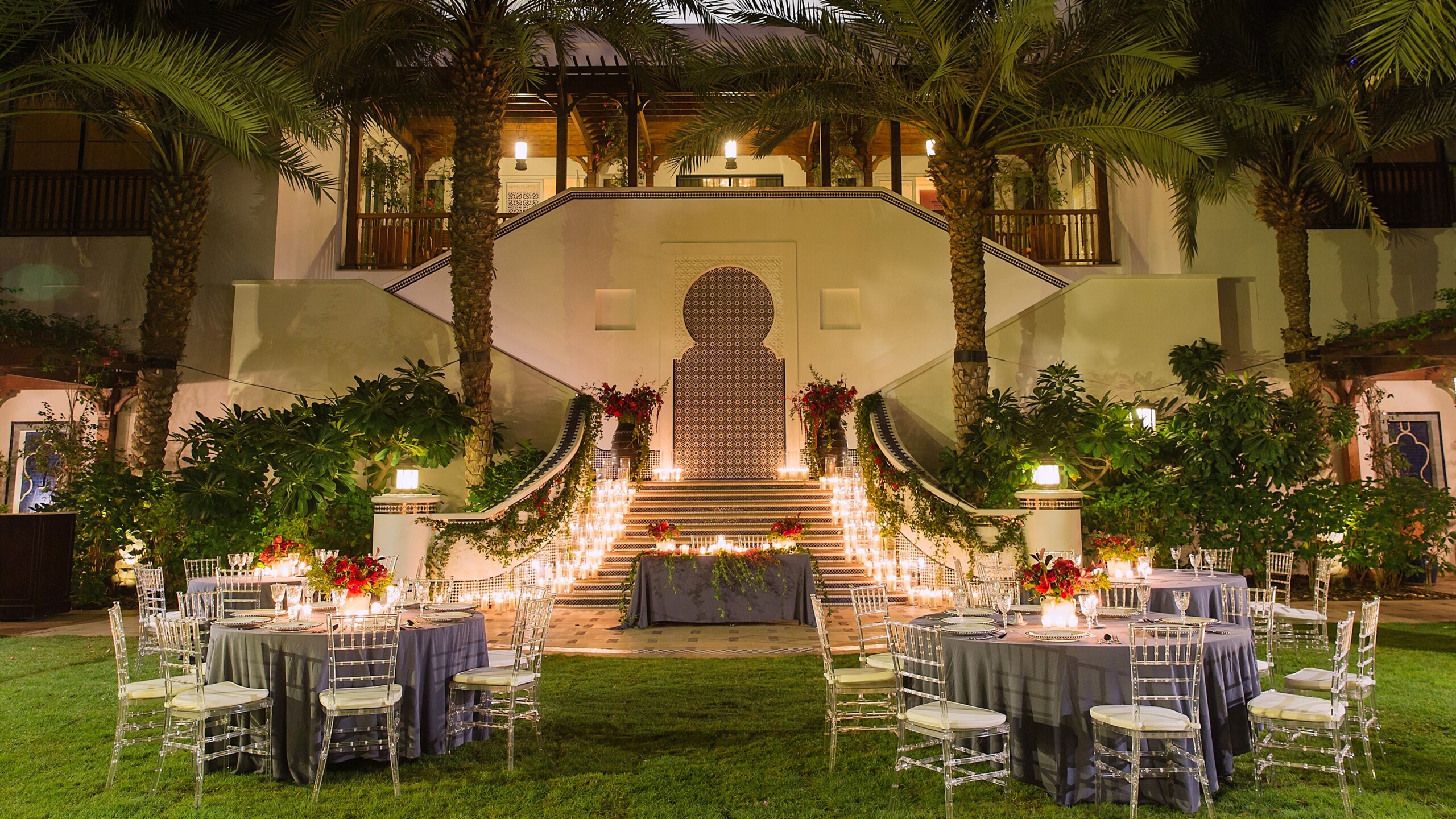 Отель Atlantis The Royal расположен на полумесяце Пальмы, это место способно поразить даже самого искушенного туриста. Для свадебного торжества в отеле доступен банкетный зал Diamond Ballroom. Пространство занимает 1000 кв м и способно вместить одновременно до 500 гостей. Благодаря изменяемой планировке зал разделяется на три отдельных пространства с разными вариантами рассадки и комнатами отдыха, что обеспечивает приватную обстановку для каждого мероприятия. Для гурманов тут предусмотрено ресторанное обслуживание: в зал можно заказать блюда из проектов знаменитых шеф-поваров или выбрать кейтеринг на свой вкус. Также для торжества можно заказать великолепные авторские торты и десерты от кондитерского ателье Little Venice Cake Company, это уникальная компания, которую основала законодательница кондитерской моды Мич Тернер. Среди клиентов кондитерской — Ее Величество Королева Англии, члены королевской семьи и звезды шоу-бизнеса. Для пре-пати идеально подойдет лужайка Emerald Events Lawn, сад занимает 500 кв м и имеет прямой доступ к Diamond Ballroom. Таким образом сбор гостей можно организовать на улице в роскошном саду, утопающем в цветах и зелени.