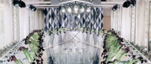 Чаще всего президиум оформляется в той же стилистике, что и вся площадка, но выглядит более эффектно и красочно, чем столики гостей. Если президиум находится у стены, особым образом оформляется и его задник — это может быть цветочная стена, какое-то изображение или изящные конструкции. Перед вами президиумы, достойные восхищения!