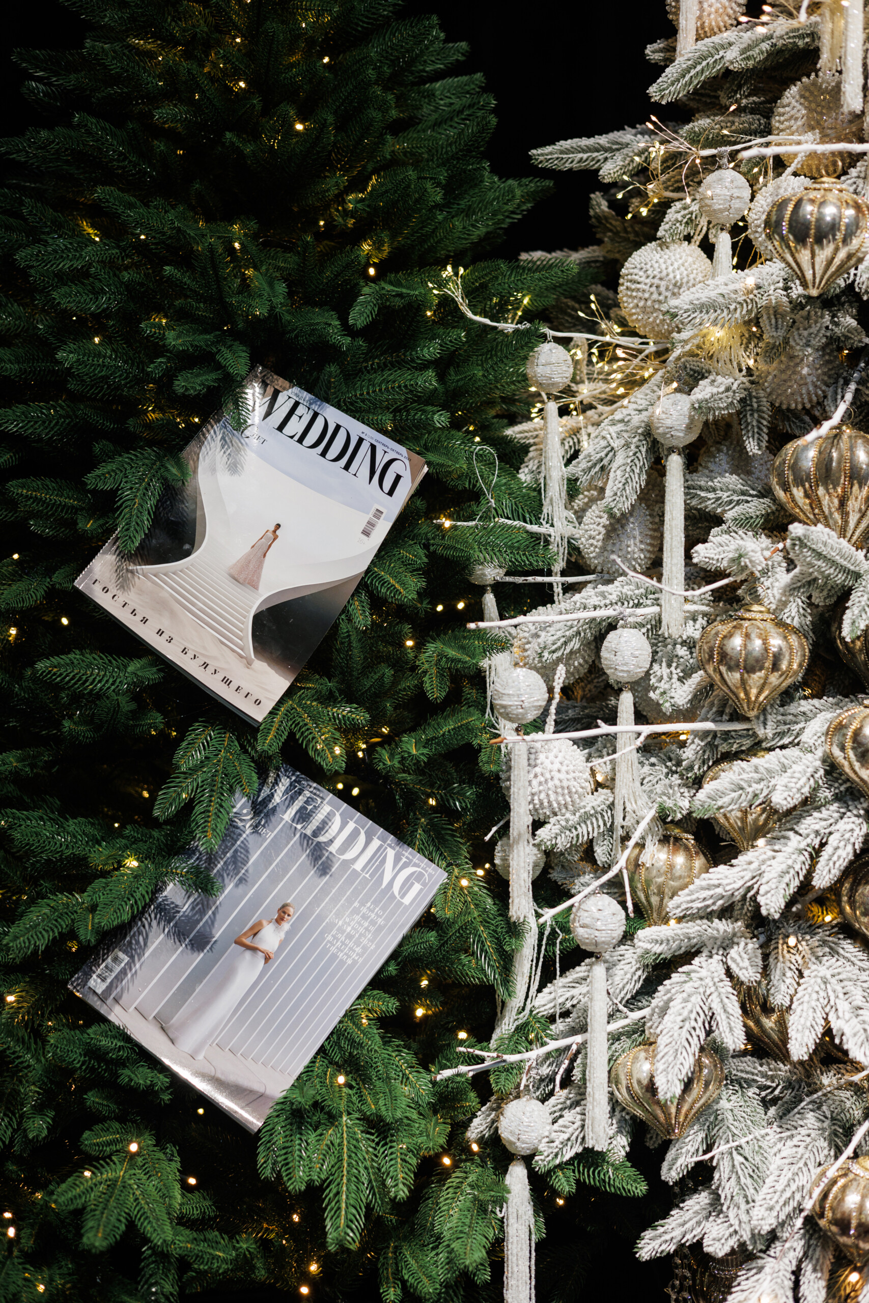 Команда BEST DECOR PLACE в своем новогоднем шоуруме создала роскошную елку, вдохновленную обложками журнала WEDDING MAGAZINE — элегантные белоснежные образы невесты и роскошь в каждой детали.