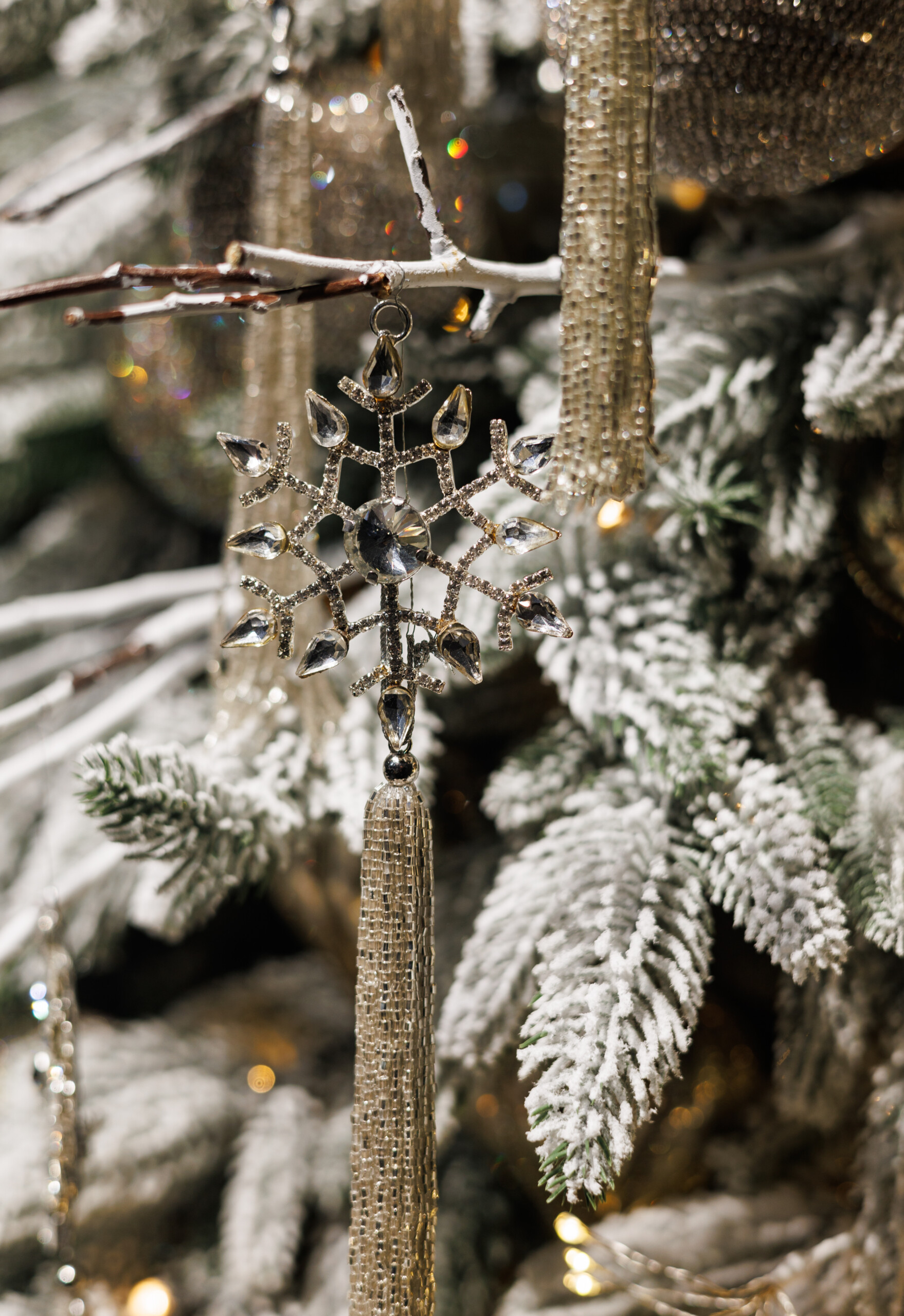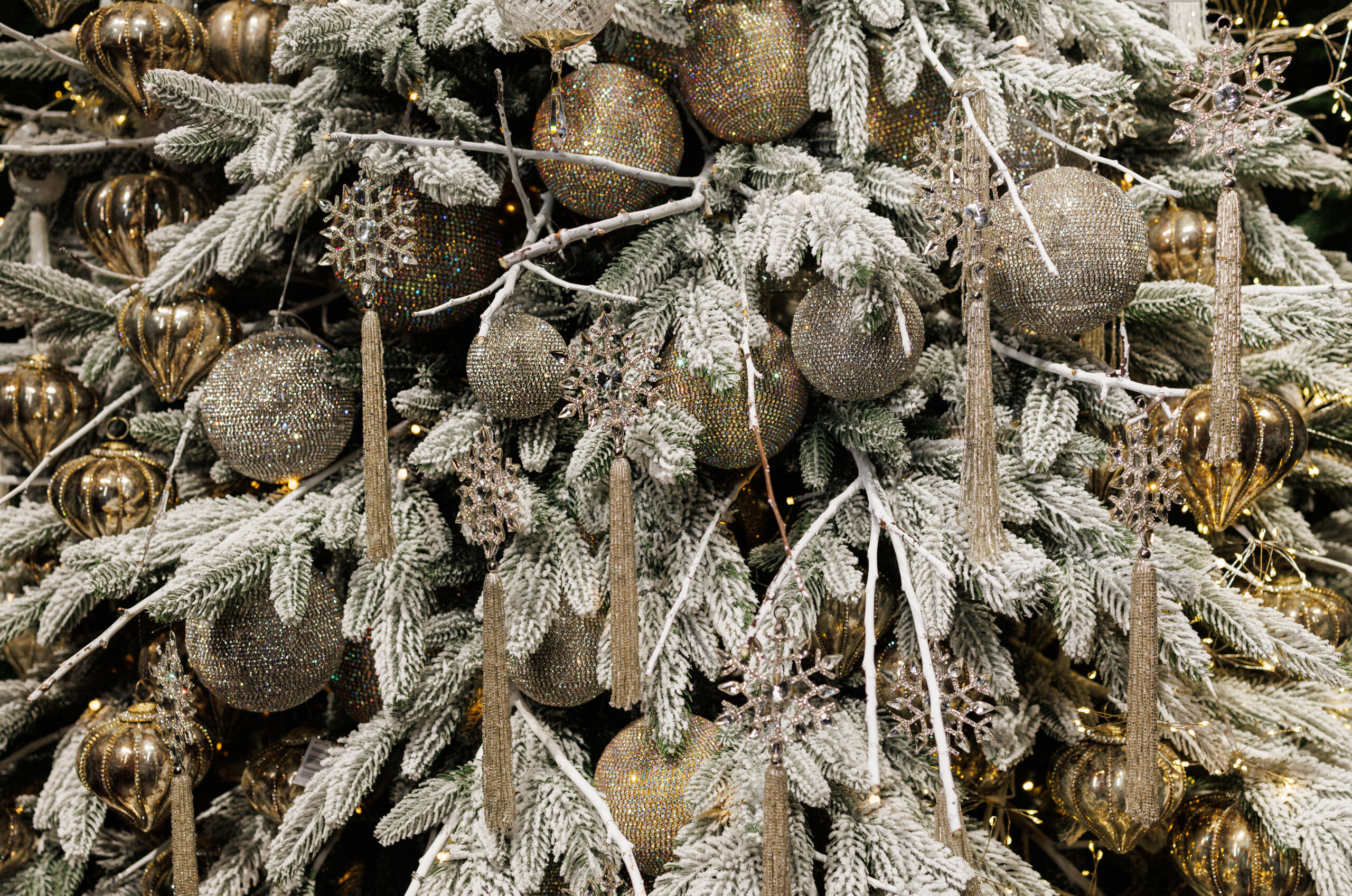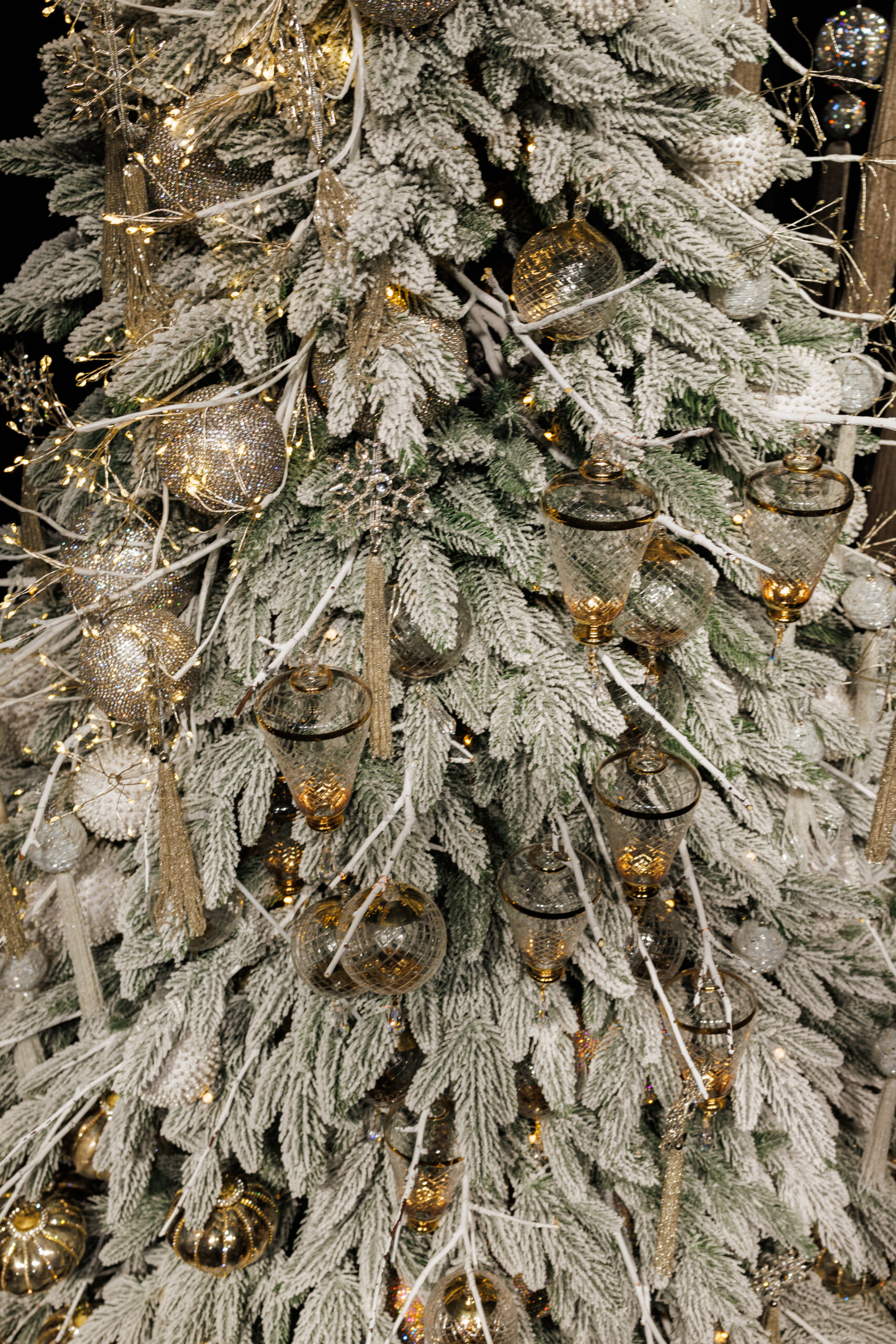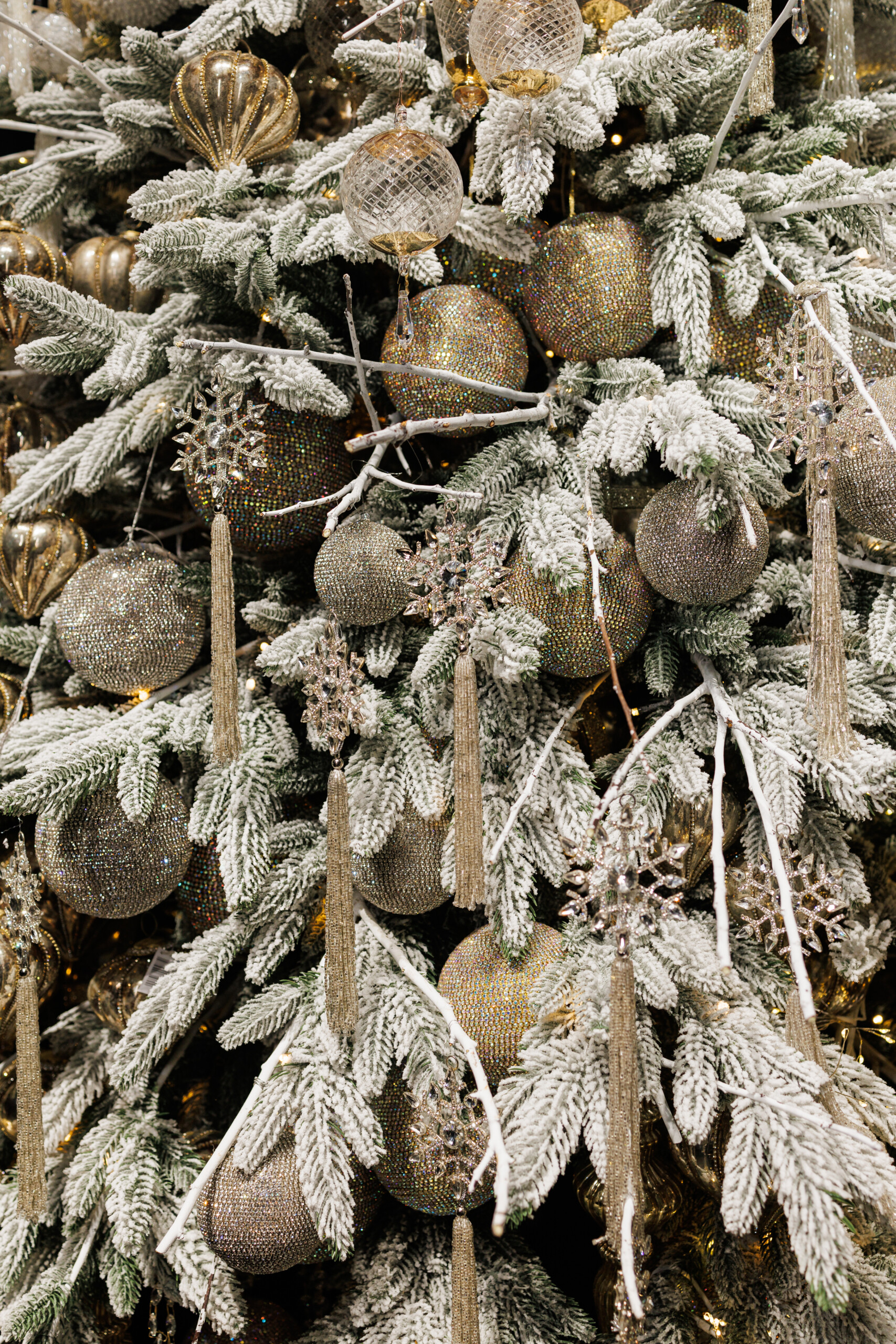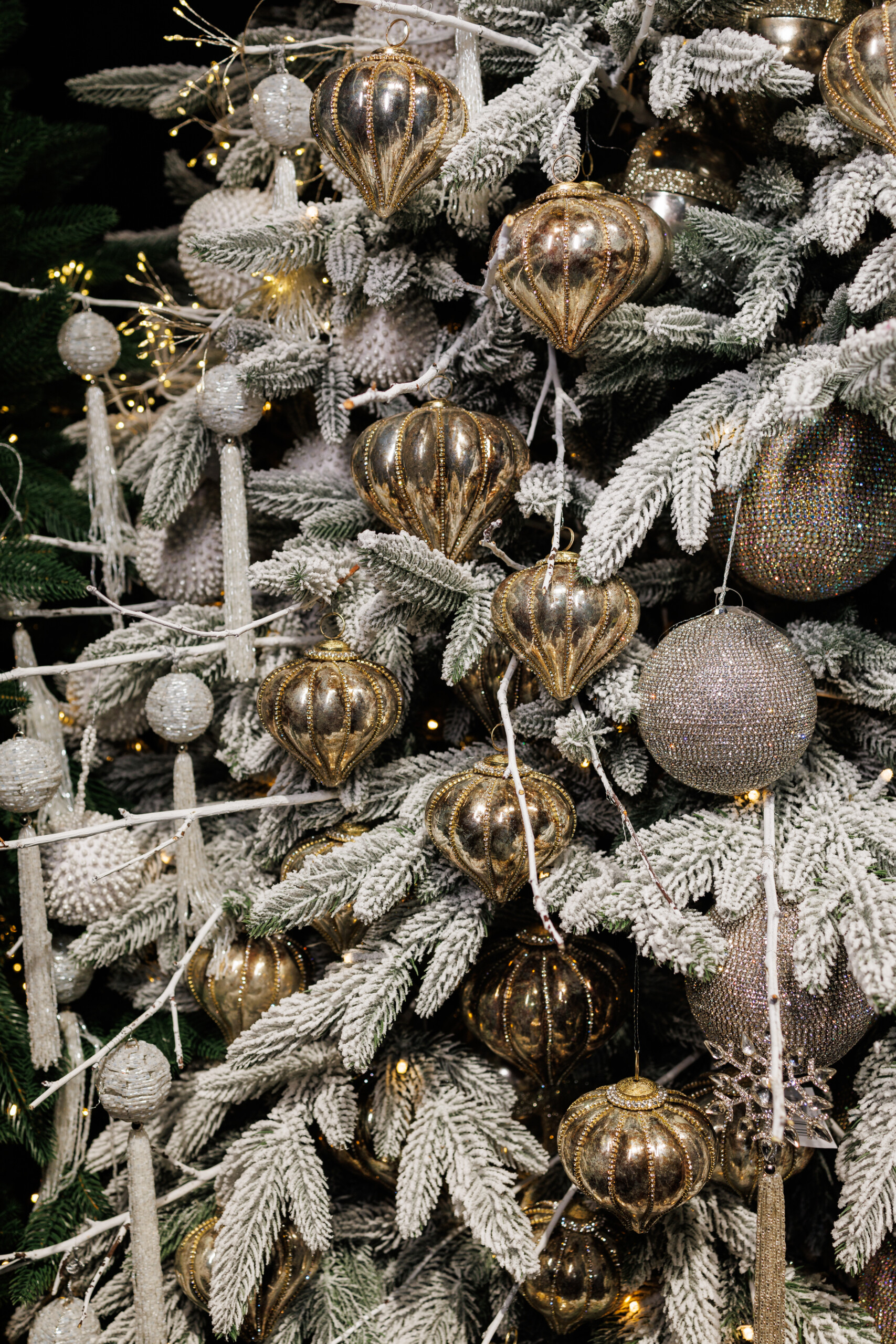 В декоре елки каскады елочных украшений и хрустальные подвесы гармонируют с сиянием белоснежных кристаллических шаров. В декоре елки WEDDING MAGAZINE x BEST DECOR PLACE используются хрустальные украшения ручной работы по авторским эскизам BEST DECOR PLACE, гирлянды с теплым белом светом и белоснежные шары со сверкающими кристаллами.