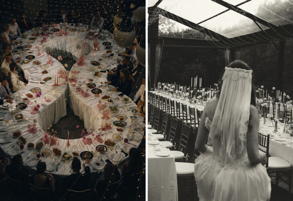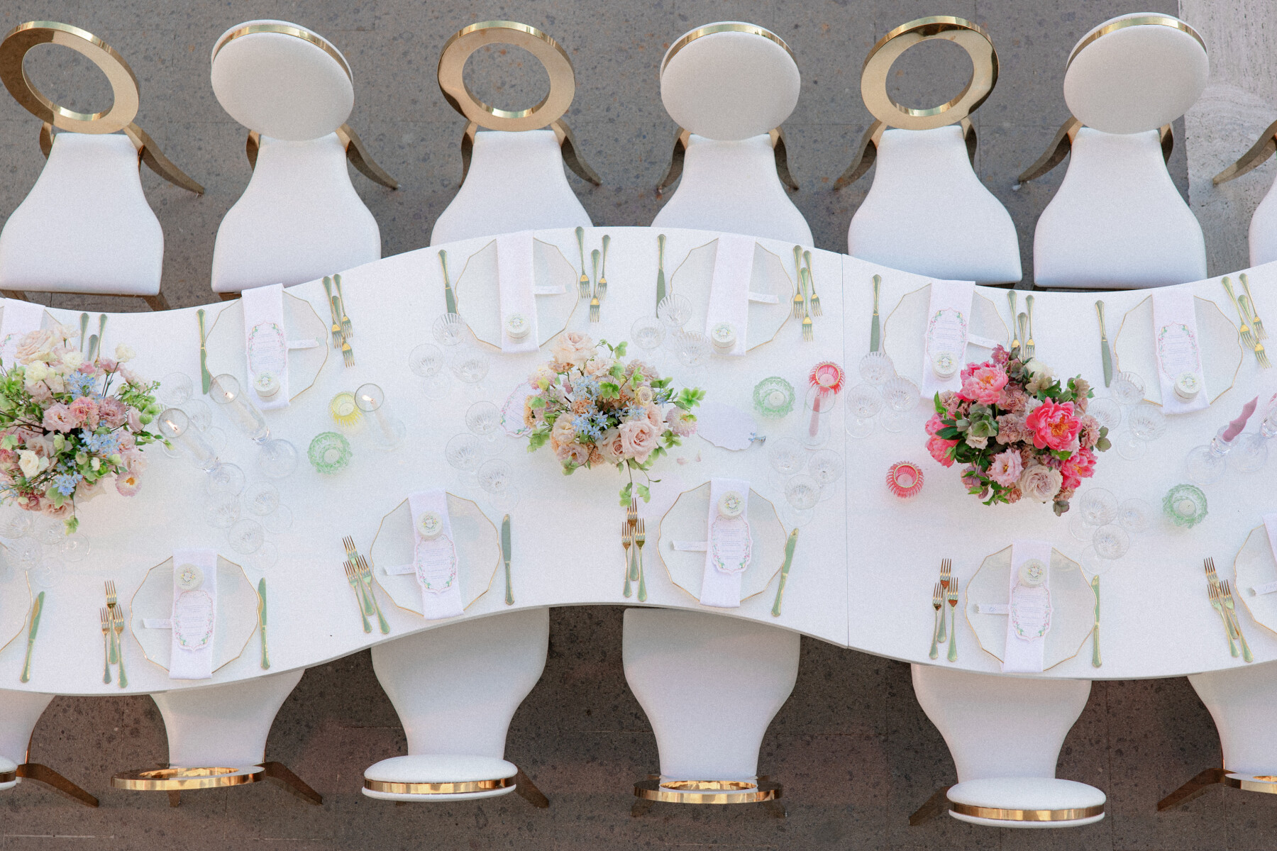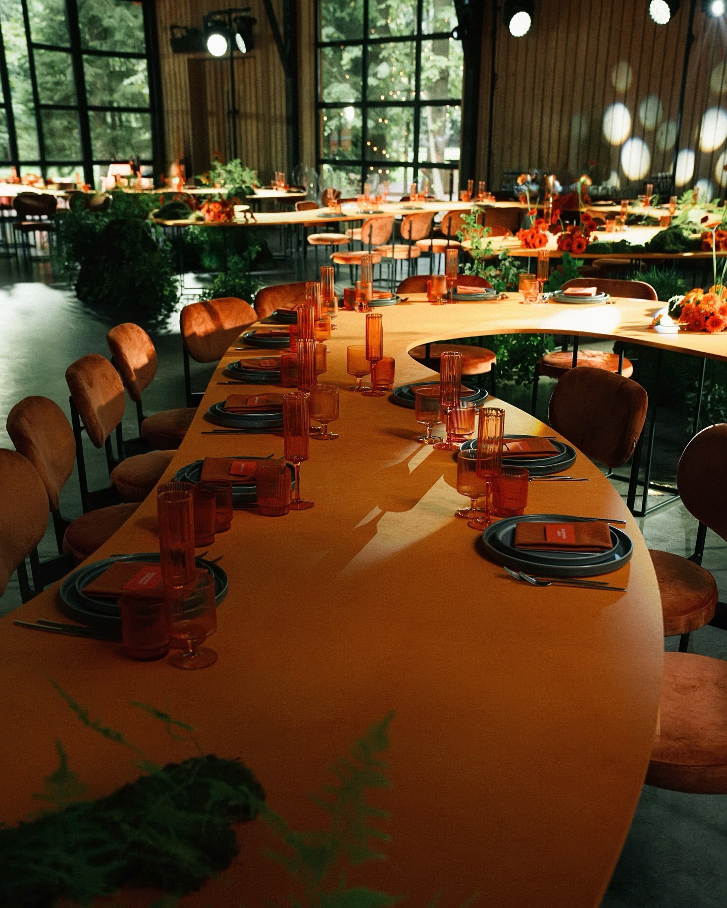 Зачастую расположение свадебных столов имеет очень ограниченное количество форм, поэтому сет-дизайн свадьбы со столами необычной формы точно произведет на гостей впечатление. Столы можно расположить в форме полукруга, знака бесконечности или «змейки» — такой прием вполне функционален, компактно расположить гостей с внешней части стола совершенно несложно.