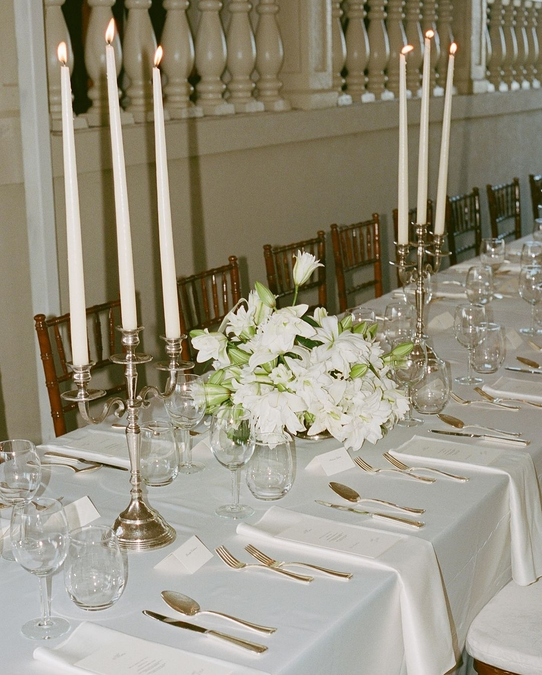 Винтажный стиль — один из главных свадебных трендов 2025 года. Потертые канделябры, длинные свечи, люстры, деревянные стулья с резными спинками — все это создает особую атмосферу и добавляет мероприятию торжественности.