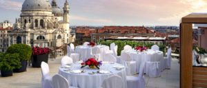Выездную церемонию и приветственный фуршет можно устроить на большой террасе на крыше площадью 250 м2, где смогут разместиться до 80 гостей, или же на террасе ресторана Club Del Doge (до 100 гостей) на берегу Гранд-канала с потрясающим видом на собор Санта-Мария-делла-Салюте.