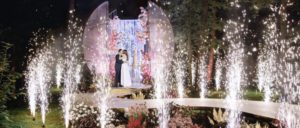 Под открытым небом установить подобные фонтаны проще и безопаснее: их можно поставить вдоль дорожки, вокруг арки для церемонии или танцпола.