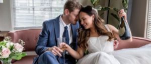 Если перед вами девушка в нестандартном для свадьбы платье цвета марсала, декорированном кружевом и воздушной тканью, к такому образу просится букет на пару тонов темнее, в винных или гранатовых оттенках с добавлением легких и нежных деталей, например, розовых лизиантусов и кремовых пионов. Такие фактурные элементы подчеркнут детали наряда, и букет невесты будет идеально сочетаться с платьем, при этом не теряясь на его фоне.