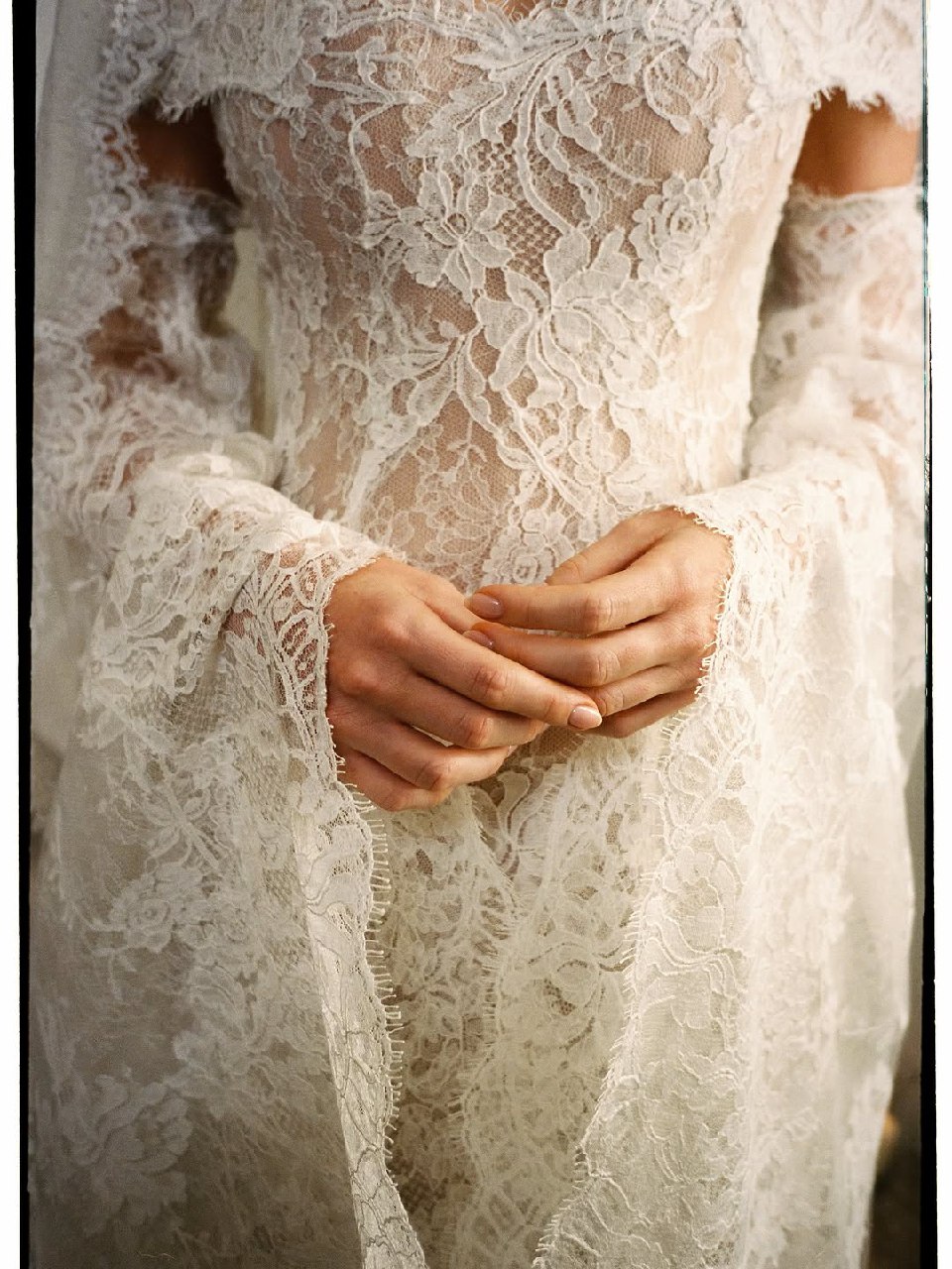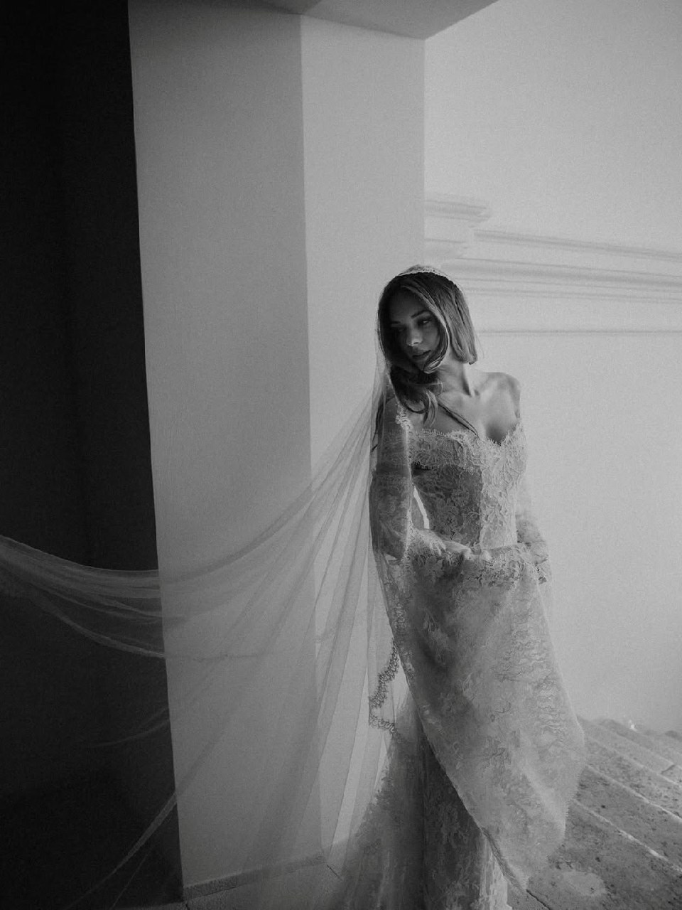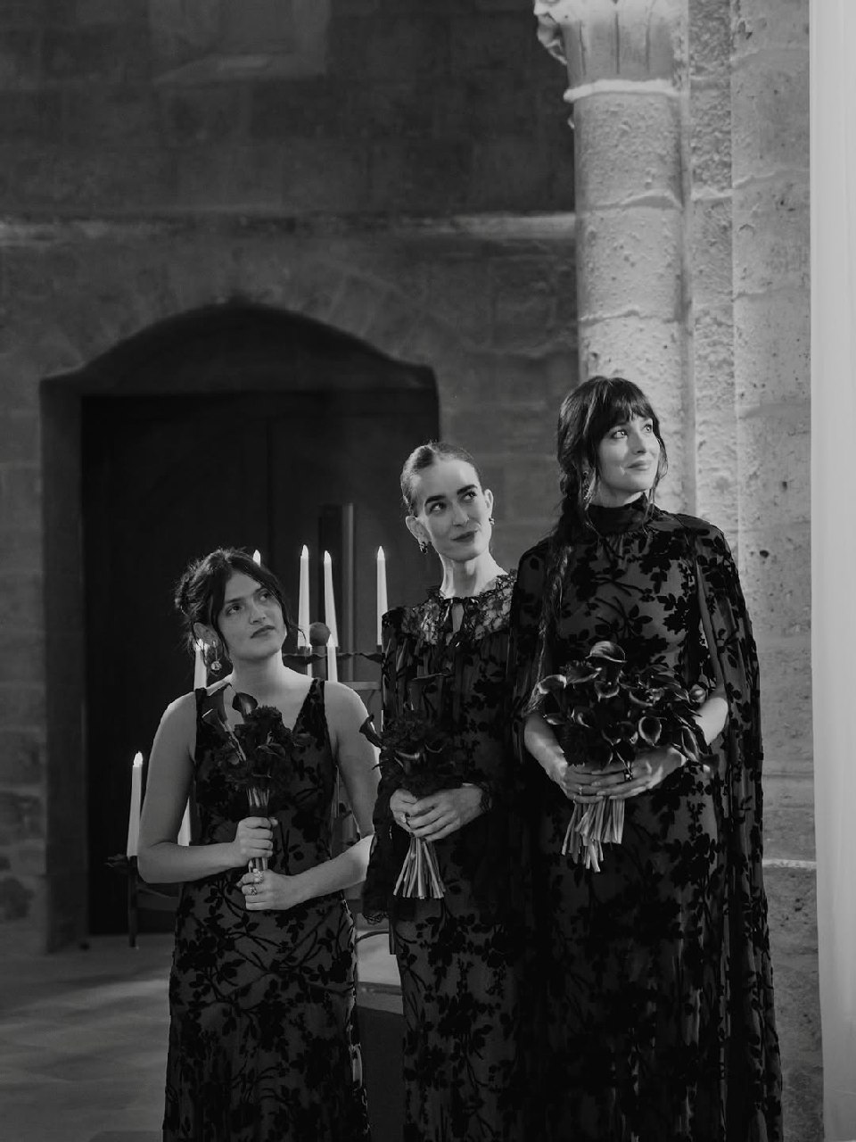 Торжество состоялось в октябре в величественном аббатстве Ретуэрта-ле-Домен в Вальядолиде, в Испании. Однако подробности и фотографии с праздника появились только на днях. Для основной церемонии невеста выбрала кастомное платье Rodarte из шифона и кружева с открытыми плечами и шлейфом в готическом стиле. На изготовление наряда ушло 9 месяцев.