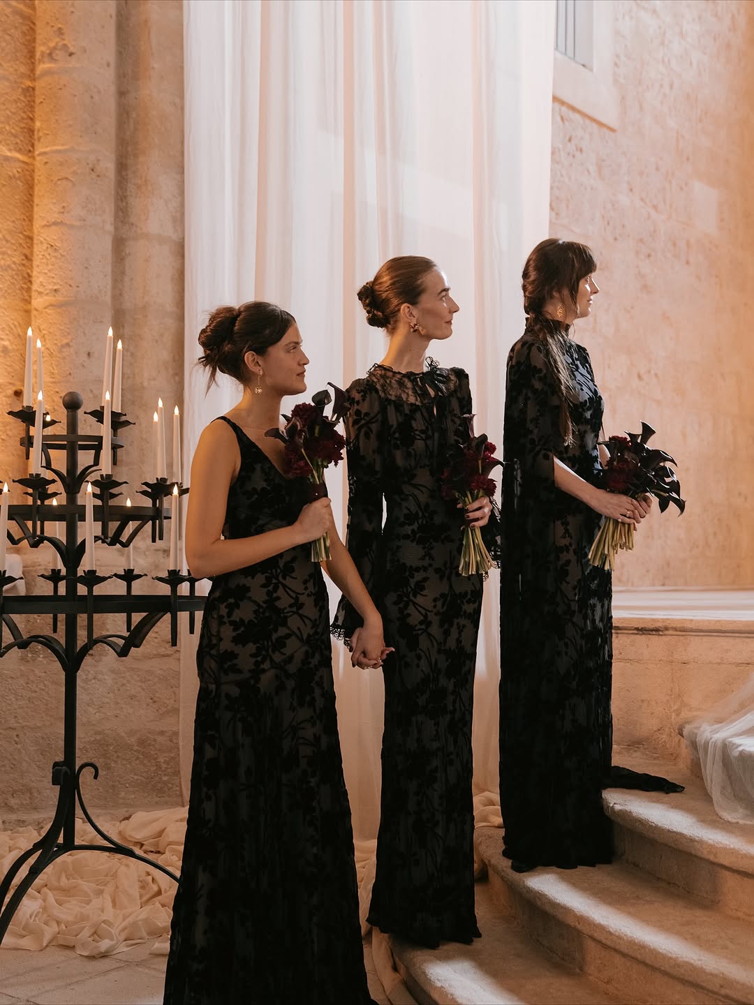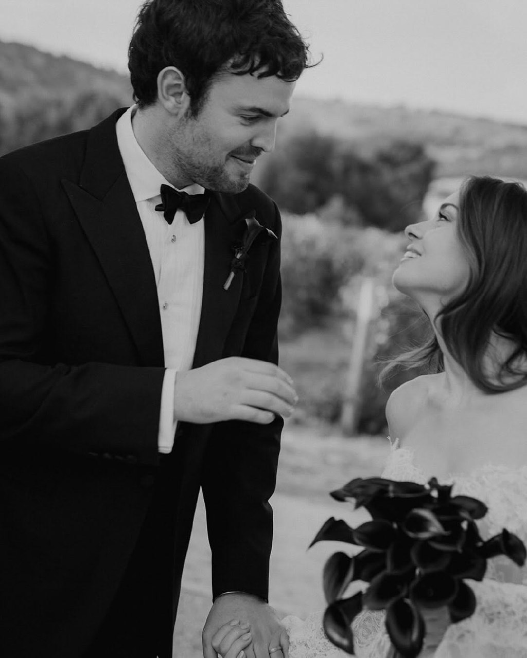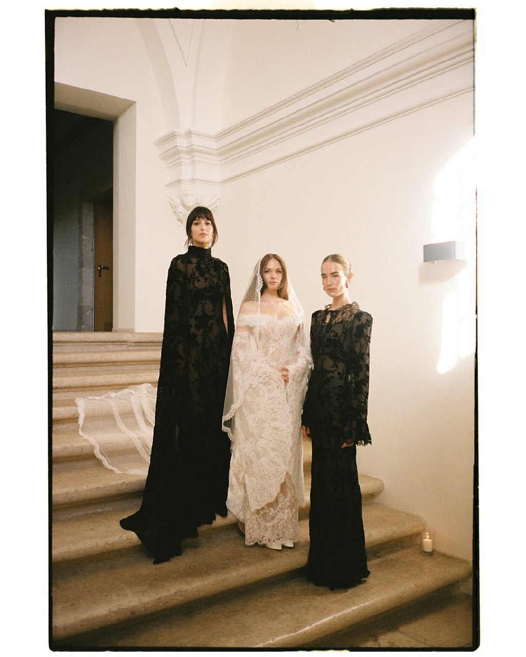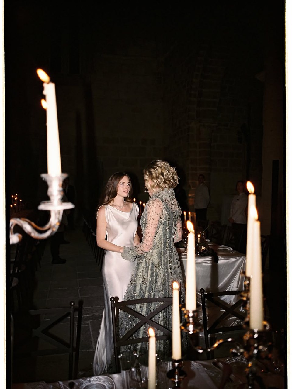 Торжество состоялось в октябре в величественном аббатстве Ретуэрта-ле-Домен в Вальядолиде, в Испании. Однако подробности и фотографии с праздника появились только на днях. Для основной церемонии невеста выбрала кастомное платье Rodarte из шифона и кружева с открытыми плечами и шлейфом в готическом стиле. На изготовление наряда ушло 9 месяцев.