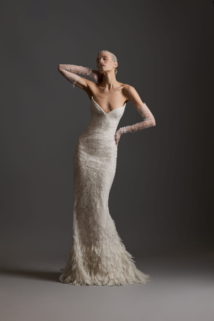 Для первой половины мероприятия: встречи гостей и фотосессии — невеста выбрала белое платье без рукавов в длине миди, дополнив образ белыми босоножками с бантиками на мысках, аккуратными локонами, легким макияжем и серьгами. На церемонию венчания невеста надела пышное блестящее платье Elie Saab с длинными рукавами и дополнила образ роскошной фатой. Третий образ Тиффани — платье с V-образным вырезом на бретельках. Жених для первой половины мероприятия выбрал серо-голубой костюм, белую рубашку и бледно-розовый галстук. Для основной части свадьбы — смокинг с бабочкой.