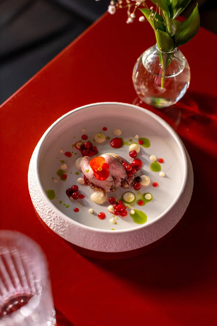 Ну и, конечно, утка с яблочным пюре и моченой брусникой — это сканди-российская эстетика, которая станет одним из главных направлений зимних гастротрендов: кисло-сладкая палитра, лаконичность и уважение к сезонности.