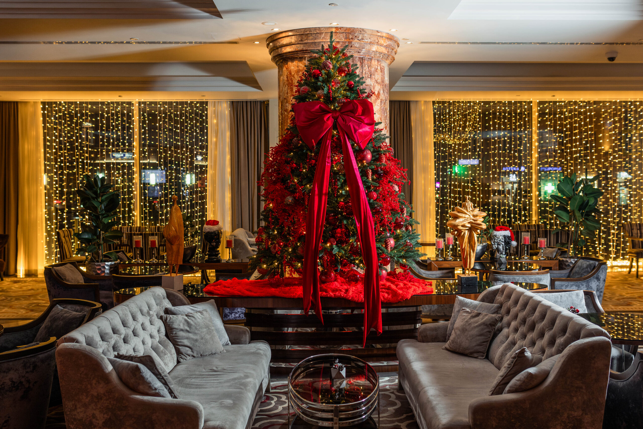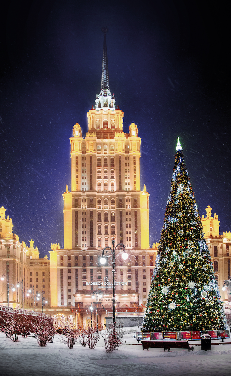 Тех, кто любит отпраздновать Новый год ярко, динамично и насыщенно, ждут в московском отеле «Radisson Collection». Само здание — настоящий новогодний дворец, сияющий от входа до шпиля, с 50 елками в интерьерах, имбирной гостиницей внутри и мандаринами повсюду.
