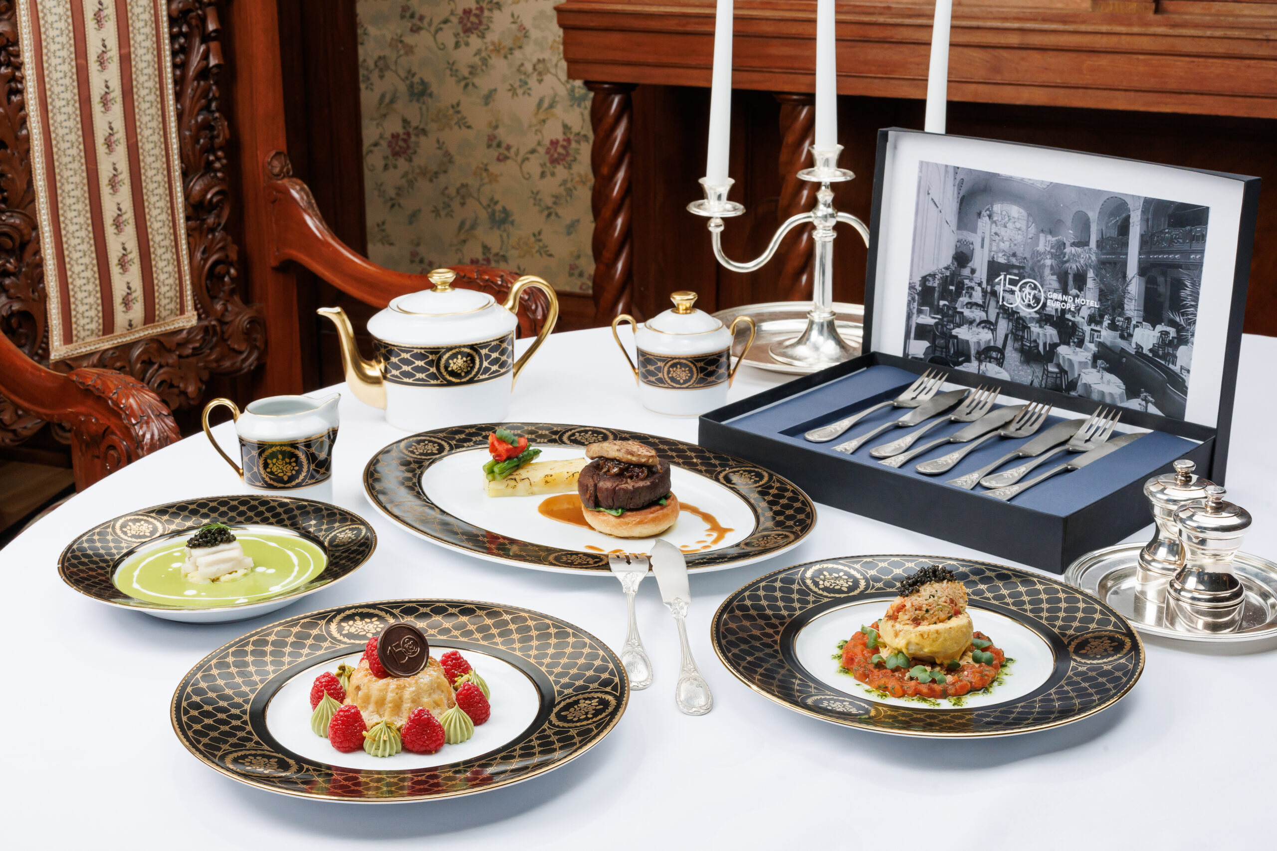 В честь 150-летия старейшей гостиницы класса люкс и признанного памятника архитектуры шеф-повар Денис Соболев исследовал архивы и представил юбилейное меню из исторических блюд, подававшихся в Гранд Отеле Европа в разные эпохи. А команда Лобби-бара создала коктейли из ингредиентов, воплощающих век XIX, XX и начало XXI. Юбилейные блюда и коктейли отель подает в течение всего года, приглашая своих гостей совершить путешествие во времени и отпраздновать знаковую дату вместе.