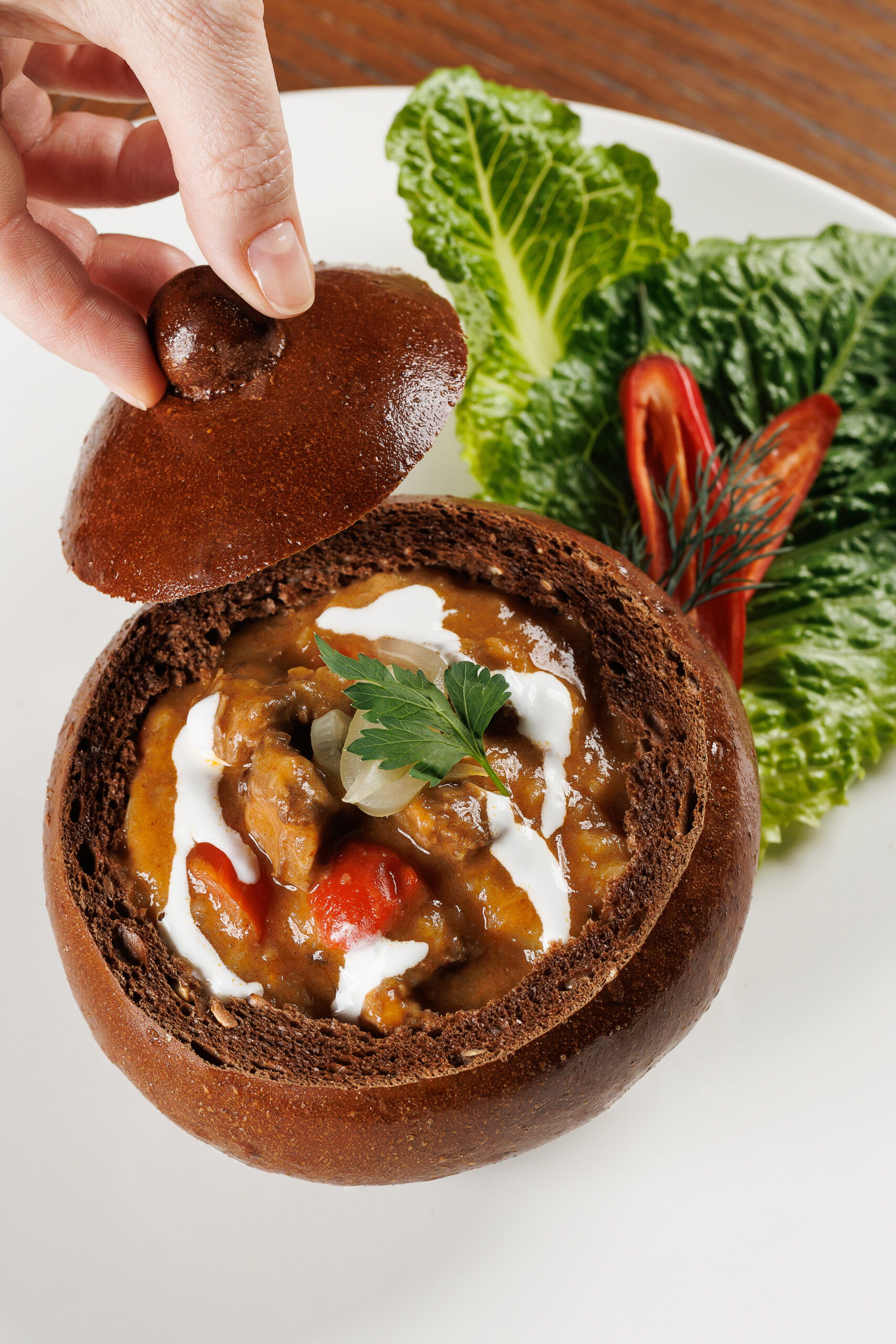В кафе «Мезонин» в честь юбилея представлено одно из самых популярных блюд России XX века — гуляш, пришедший из Венгрии, но ставший классикой советской кухни благодаря книге «О вкусной и здоровой пище» и ГОСТу на его приготовление. Шеф-повар Денис Соболев подает блюдо в ржаном хлебе, каким помнят его гости «Мезонина» в начале 2000-х.