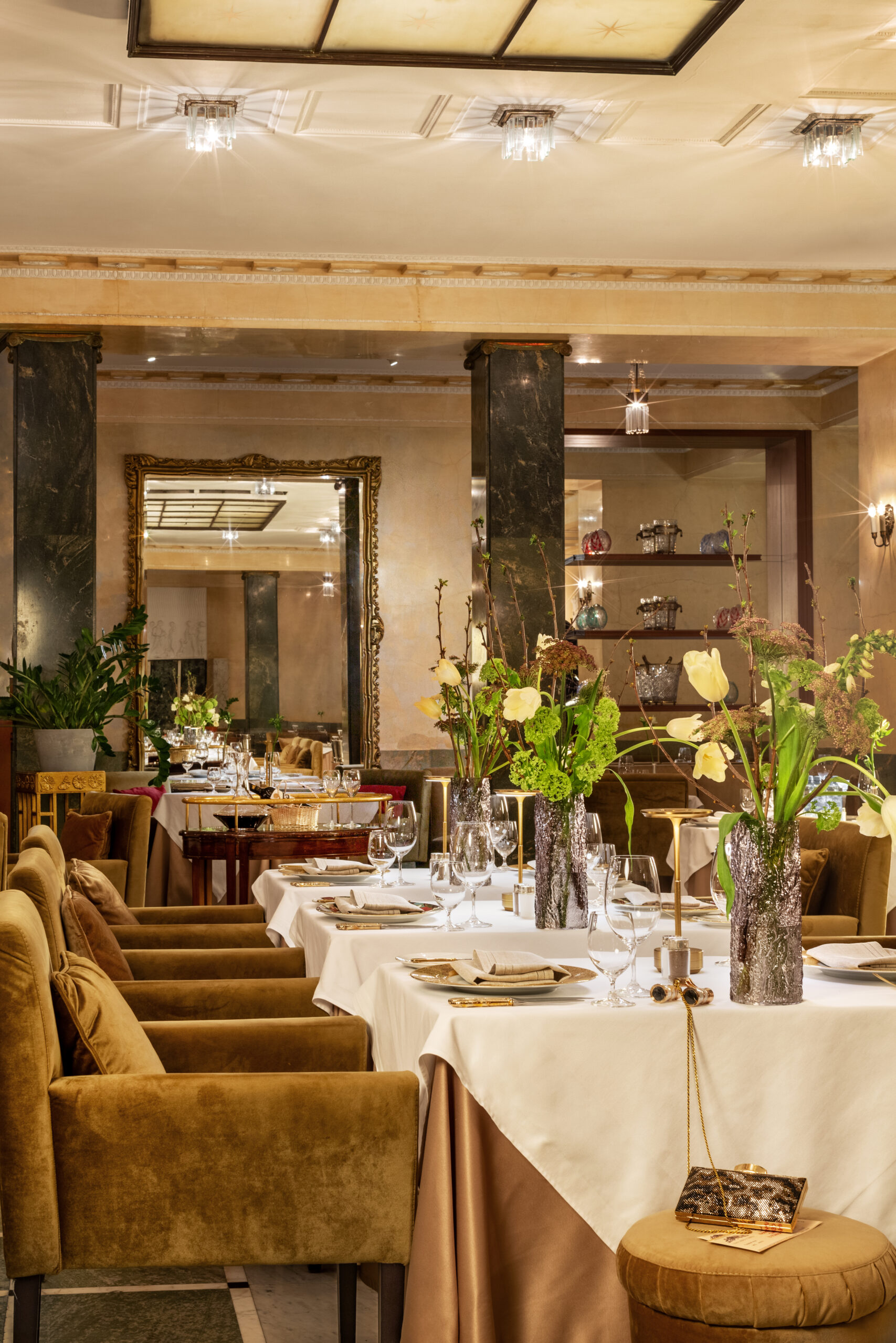 Подлинные интерьеры лобби-бара Гранд Отеля Европа в стиле ар-нуво и живая музыка становятся идеальным антуражем для погружения в историю.