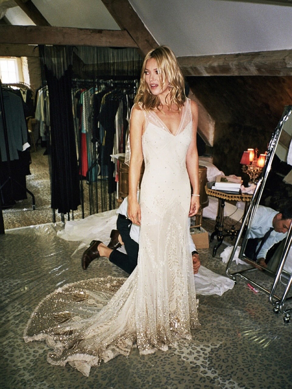 «Мы были так влюблены, он просил выйти за него чуть ли не каждый день», — вспоминала Мосс. «А тут эти цыгане — моя слабость, — мне кажется, они дикие романтики. Им ничего нельзя до свадьбы, поэтому женятся очень рано — лет в шестнадцать. И вы не представляете, какие там платья — невесты похожи на блестящих бабочек в десятикратном увеличении, еле в проход помещаются. И вот я посмотрела на это все и сказала Джейми: „Девчонки всю жизнь ждут этого дня — давай и мы с тобой сыграем свадьбу“».