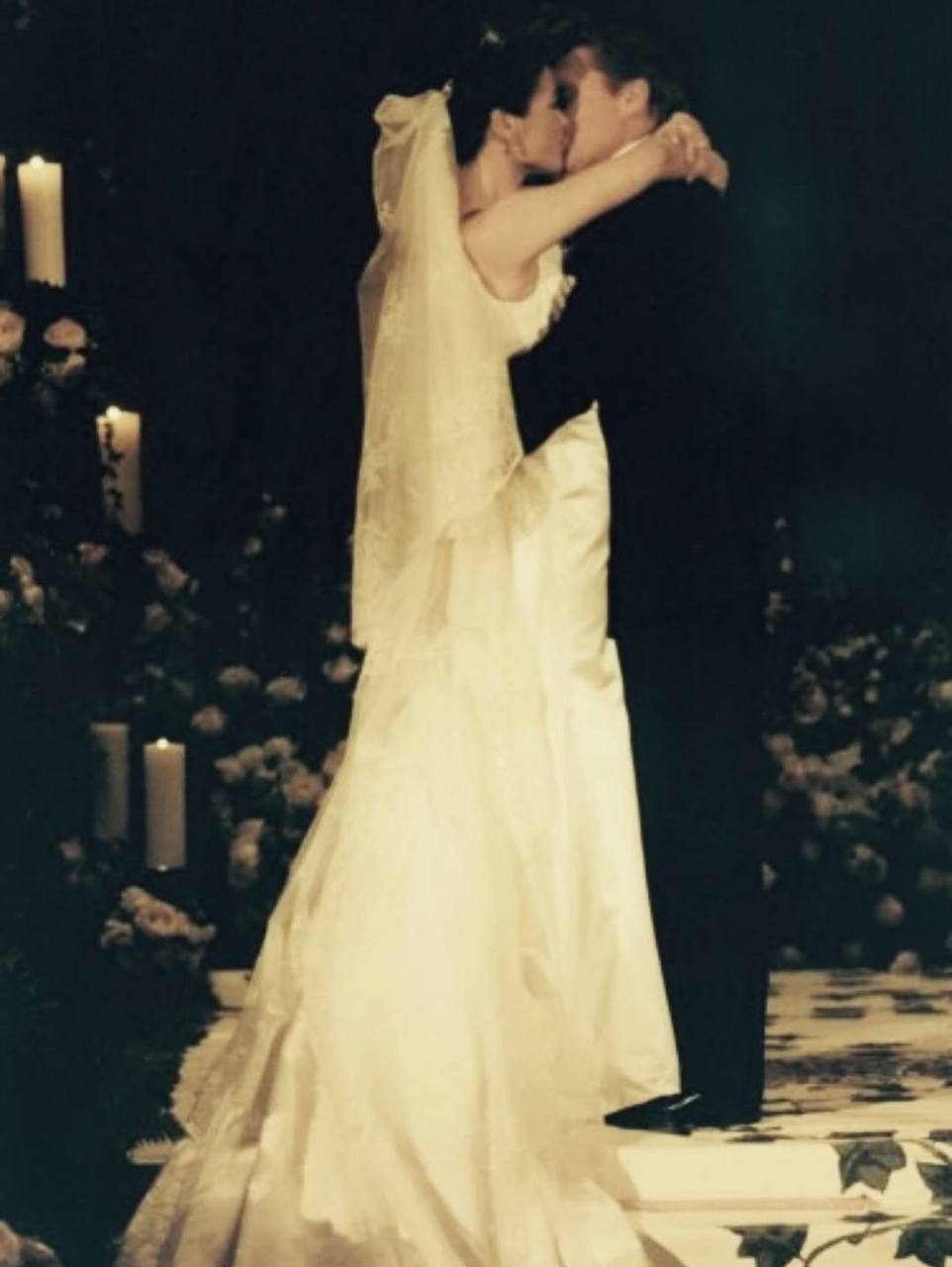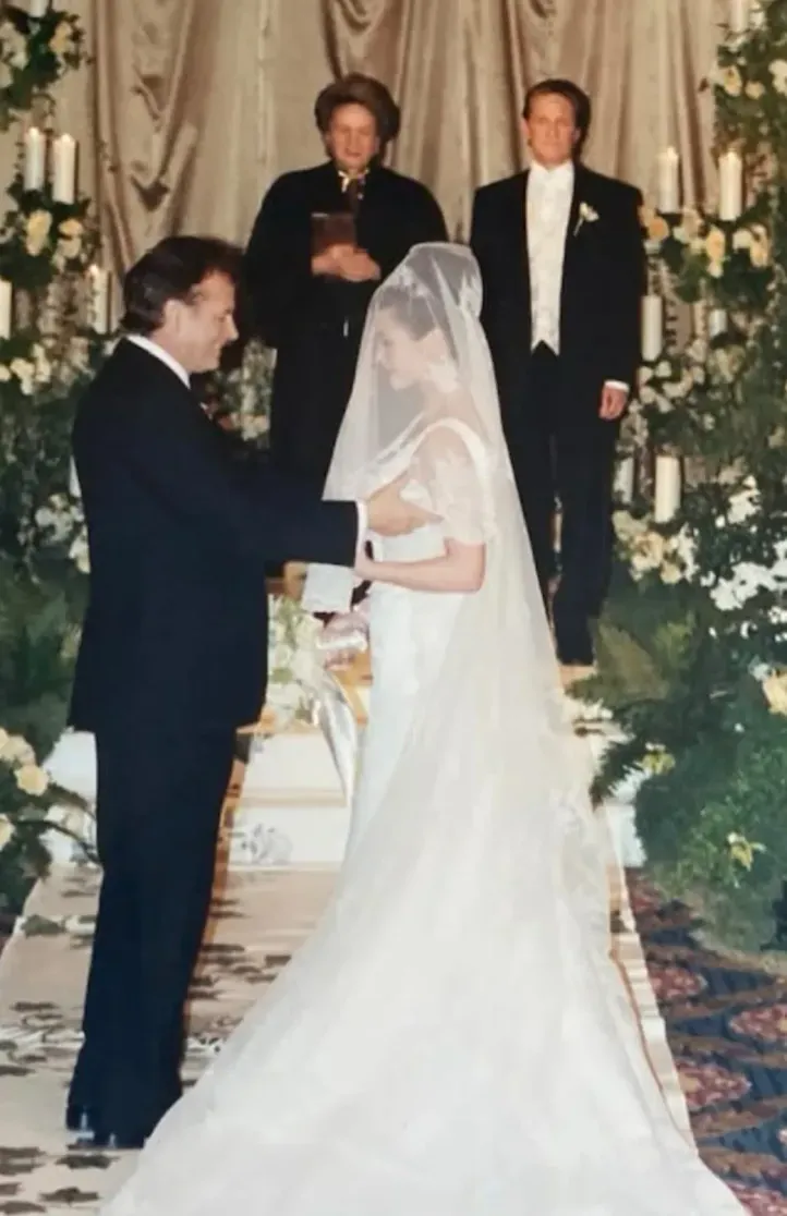 Далее последовали кадры с их пышной свадьбы, которая состоялась в ноябре 2000 года в нью-йоркском отеле Plaza. На фотографиях сияющая невеста позирует вместе с женихом, их трехмесячным на тот момент сыном Диланом и родителями.