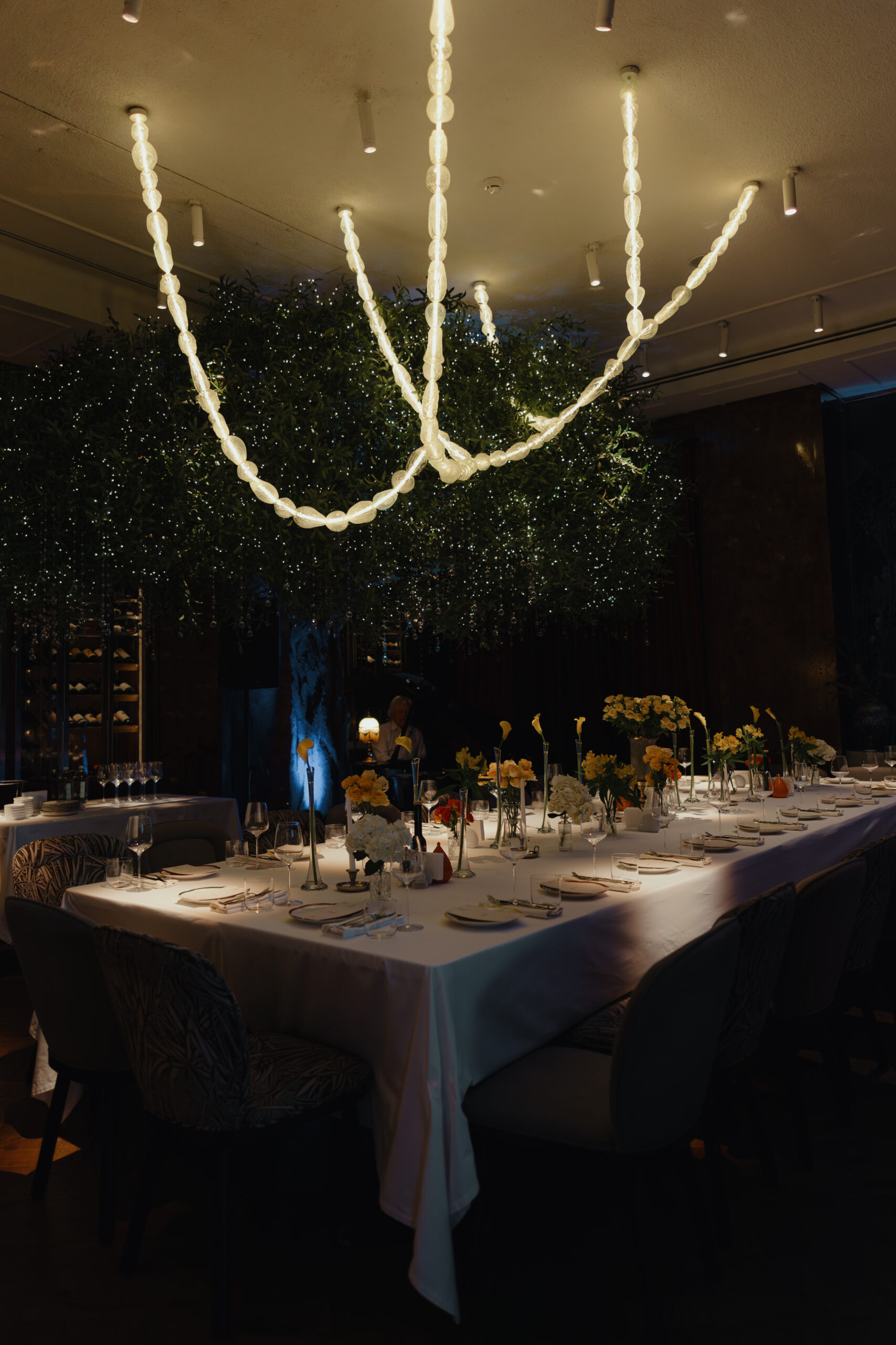 Винный зал — завораживающее пространство для 40 человек. Свечение ветвей раскидистого оливкового дерева словно приглашает собраться за уютным итальянским столом под струящиеся мелодии живой музыки.