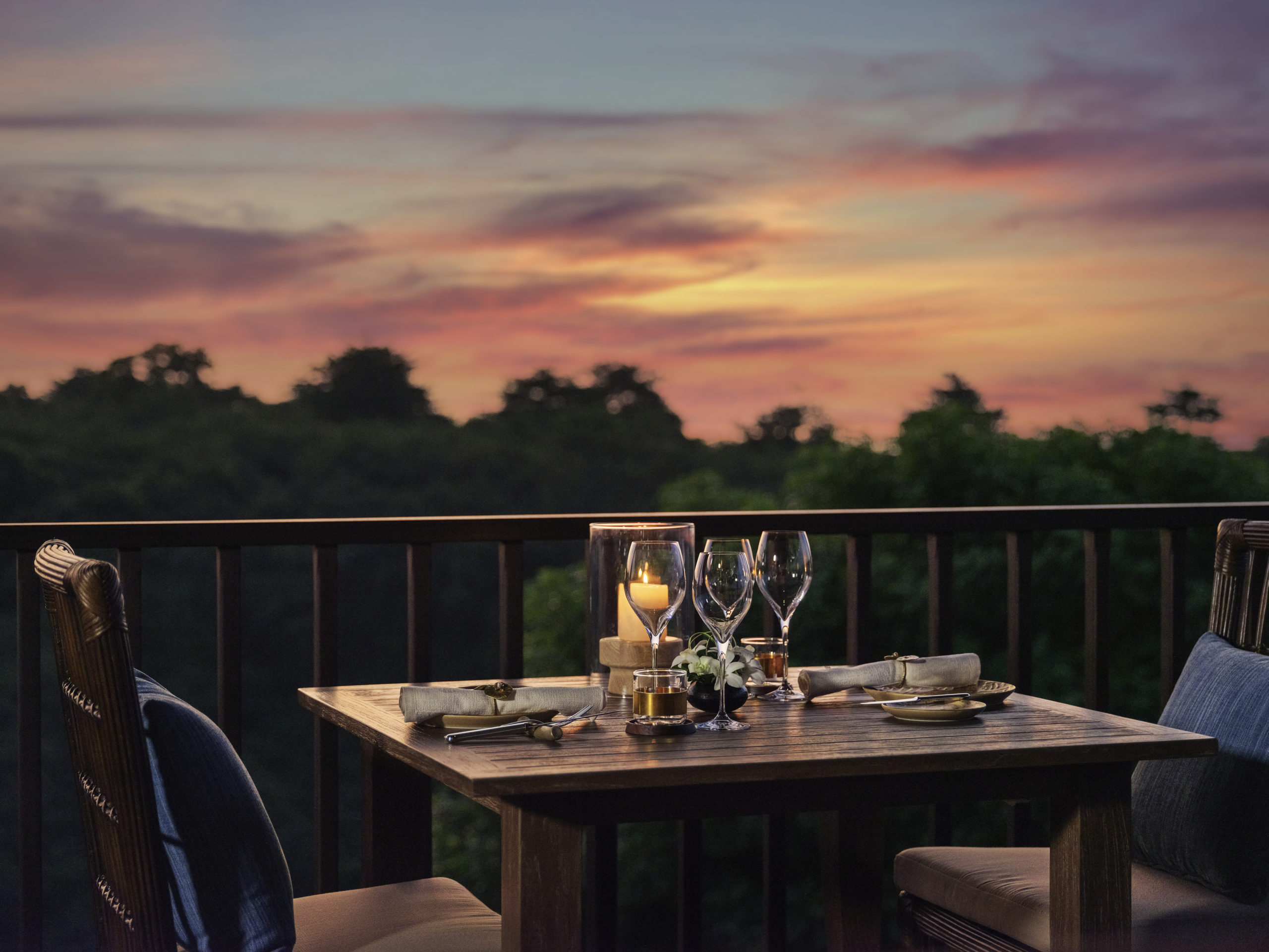 Гастрономические впечатления можно получить в фирменном ресторане Rumari или в Loloan Beach Bar and Grill (морепродукты и мясо на гриле). Насладиться романтическим ужином можно в эксклюзивном ресторане The Secret Cave, подсвеченном мерцающими факелами и свечами, или в Purnama Honeymoon Bale, построенном на скалах на краю океанского побережья курорта. The Farm Terrace — идеальное место для обедов на свежем воздухе в центре пышных садов под перголой из страстоцвета. Гордость отеля — бар Writers Bar и прилегающая к нему библиотека, где можно заказать коктейль «Балийский слинг», специально созданный для Raffles.