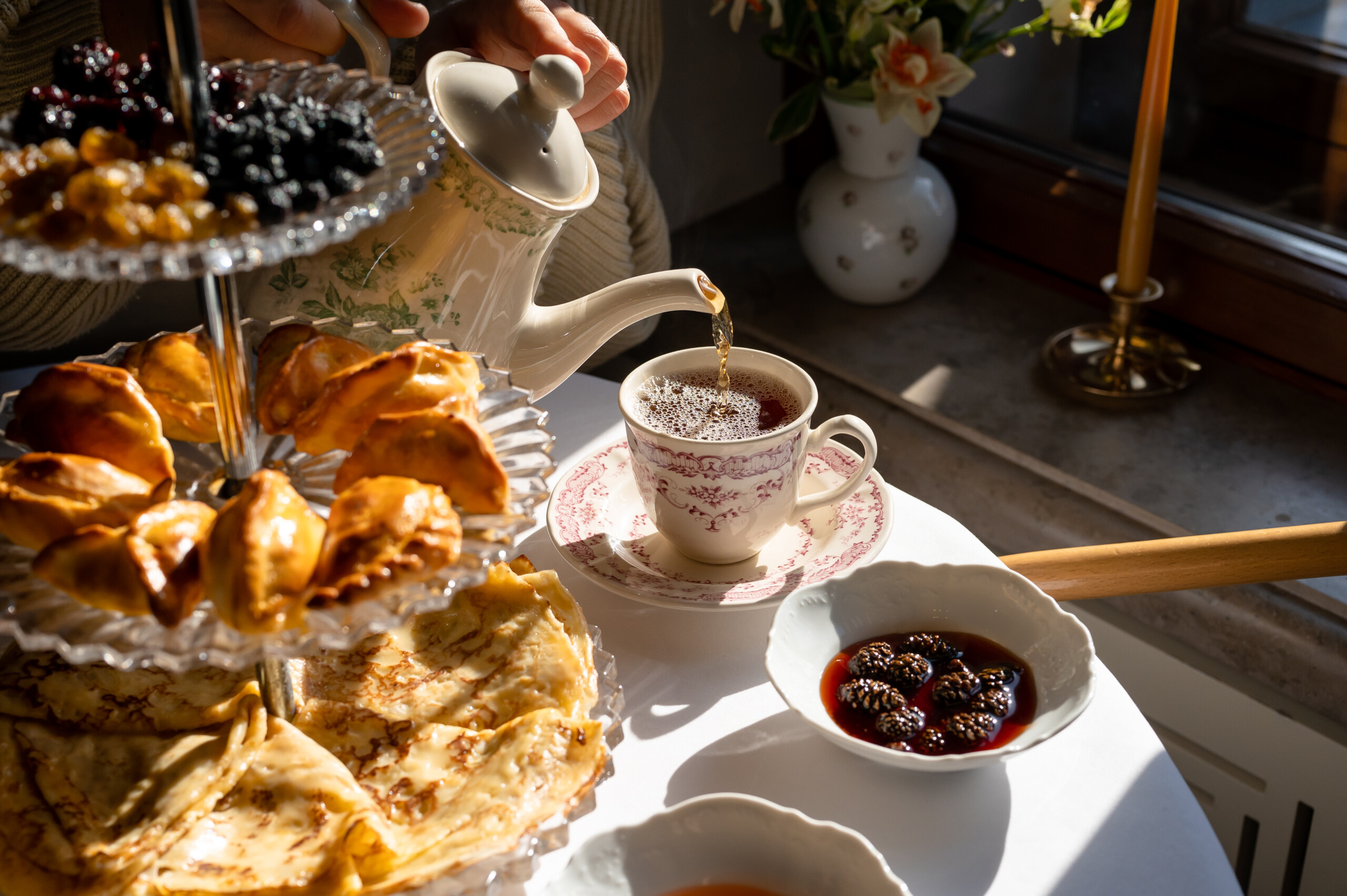 В ресторане современной русской кухни Niki по будням с 12:00 до 17:00 подают чайный сет. Чайный сомелье Lucky Group Анна Свищева и шеф-повар проекта Михаил Романов подготовили специальное предложение к чаепитию на двоих. «Наша цель — возродить традицию царского русского чаепития и представить ее в современном формате. Чаепитие на Руси было важной частью культуры — символом гостеприимства и неспешного отдыха. Этот ритуал объединял людей за одним столом, создавая атмосферу доверия и близости. Именно поэтому сет в Niki рассчитан на двоих — чтобы напомнить, что чай сближает, а время, проведенное вместе, становится самой ценной традицией», — шеф-повар Михаил Романов. В сет входит чайник чая на выбор, а к нему — этажерка с угощениями: пирожками с разнообразными начинками, цукатами крыжовника, ревеня и аронии, а также блинами и топпингами: сметаной, красной икрой и двумя видами варенья — вишневым и из сосновых шишек. Чайный сомелье Анна Свищева рекомендует дополнять сет авторским купажом Niki. Напиток вдохновлен традиционным русским чаем из самовара, который благодаря особому способу приготовления приобретал легкий копченый вкус. Купаж Niki воспроизводит этот аромат в сочетании с нотами малины, мяты и черной смородины. Стоимость сета — 4900 рублей.