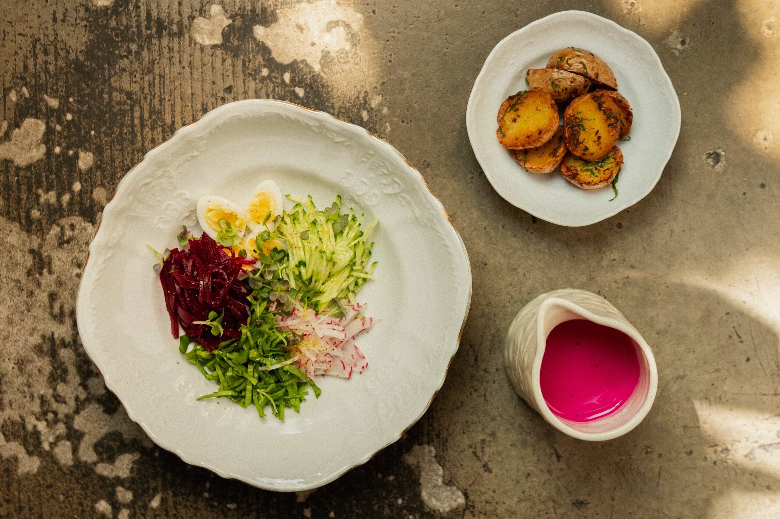 В уютном ресторане-кондитерской на Бауманской добавили в меню яркие блюда и напитки, которые передают атмосферу загородного отдыха и солнечных дней на природе. Бренд-шеф Витторио Чириззи разработал special меню, сохраняя традиции летнего сезона. Бестселлер в жаркую погоду — окрошка (650 руб.) — свежие овощи, нежный картофель-мэш и индейка су-вид сочетаются с двумя вариантами заправки: кефир с мятой или терпкий квас с яичным желтком и сметаной. В меню добавили насыщенный холодный томатный суп (780 руб.) — ароматная сальса верде из зеленых томатов добавляет пикантности и приятного пряного послевкусия. Фаворит бренд-шефа — арбуз и фета (890 руб.) — сладость арбуза, солоноватость сыра, цитрусовые ноты соуса юдзу-понзу и хруст фисташек создают идеальный баланс. Зелёный салат с миксом семечек (830 руб.) — лёгкий, но сытный вариант с медовым дрессингом, свежими овощами и семечками, ставший популярным у гостей Nouge, теперь есть и в Kalabasa. Сочный стейк мачете с мятым картофелем и сальсой верде (2500 руб.) — блюдо, которое будто приготовлено для дружеских посиделок на даче. Мороженое — как неотъемлемый атрибут лета, предлагают трех видов: клубничное, фисташковое и ванильное (350 руб.). Шеф-бармен Максим Артёмов любит работать со вкусами и предлагать гостям самые неожиданные сочетания, которые превращаются в идеально сбалансированные напитки. Например, кисловатый щавель и сладкое киви — в Jade (550 руб.), а синяя матча и кокосовое молоко — в Nami (550 руб.). Барбарис, земляника и шалфей, или ароматный яркий ананас, апельсин и семена чиа, или алоэ и гибискус (каждый по 450 руб.) — три новых авторских чая уже есть в меню.