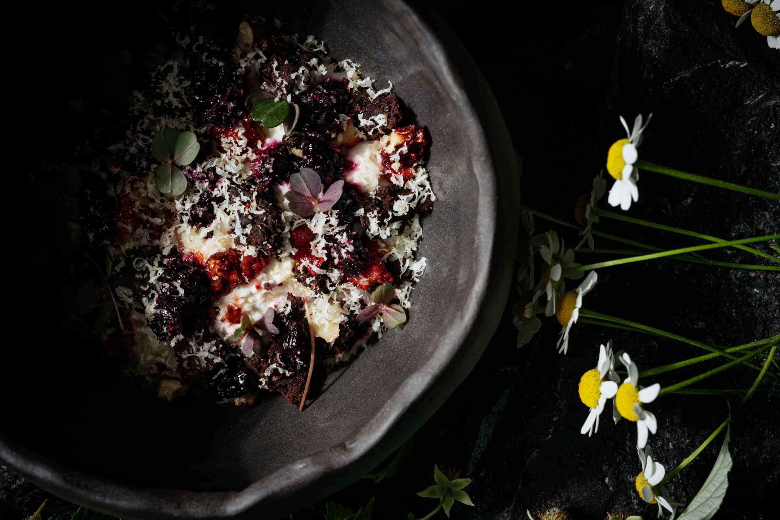 Подхватывая эстафету Moscow Restaurant Week, ресторан кухни народов Сибири Manul (Охотный ряд, 2) демонстрирует свой особый взгляд на главных героев его нового сезона — летние овощи, ягоды и дикоросы. Над фестивальным меню Manul витают ароматы дыма, а в глубине знакомых сочетаний вкусов прячется необузданная энергия. Шеф Виктор Шайдецкий даже для понятных продуктов придумывает самые замысловатые сюжеты. Томит в пряном оливковом масле фенхель, чтобы подать его с нежным клубничным соусом-софрито, в глубине которого слышится едва уловимый привкус розового перца. Коптит над открытым огнем цукини, добавляя ему сибирской брутальности пеной из черемши. И классический «Темный лес» у него еще таинственней, и еще «темнее» — с черной смородиной вместо вишни, солодкой и свеклой.