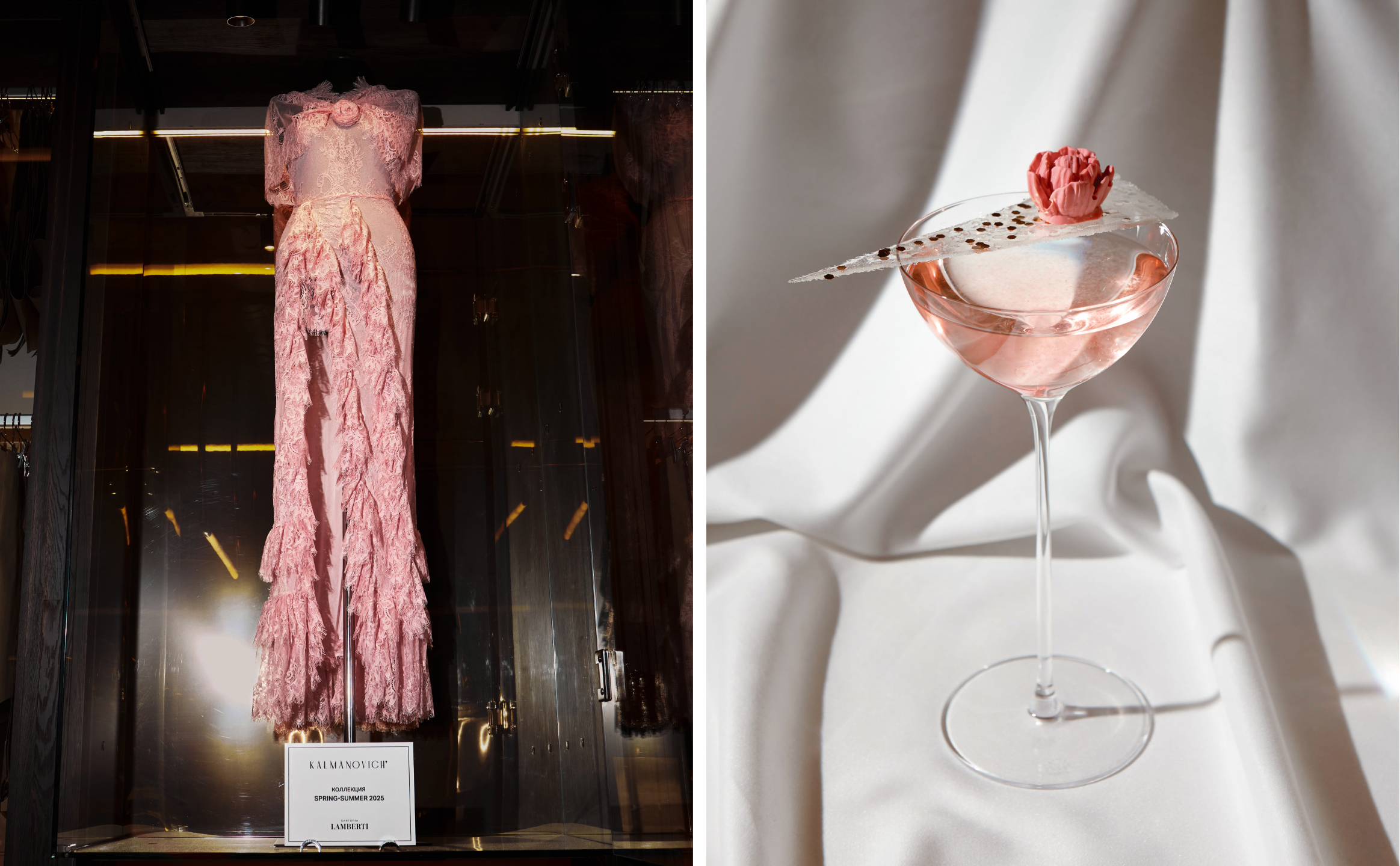 В гастрономическом ателье царит «Новая романтика» — до конца весны в витринах экспонируют одноименную коллекцию Kalmanovich весенне-летнего сезона 2025, воспевающую женскую нежность и чувственную красоту. Одним из главных образов новой коллекции стало полупрозрачное платье из кружева оттенка розового зефира с драпировками на бедрах, плавно подчеркивающее изгибы фигуры. Идеально для самых романтичных встреч и эмоциональных событий, ведь дизайнер Юлия Калманович знает «что хочет женщина» и протяжении 15 лет конструирует вечерние и коктейльные платья. ДНК бренда — роскошные ткани, вроде тафты, шелка или бархата, а также асимметричные детали и микс фактур. Именно блеск пайеток и дизайн броши послужили вдохновением для создания специального коктейля Kalmanovich, поддерживающего коллаборацию. Барный кутюрье Sartoria Lamberti собрал в невесомом бокале на тончайшей высокой ножке виртуозную коктейльную композицию. Блестящий осколок треугольной формы отсылает к драпировкам и разрезам платьев, а шоколадный пион к утонченному и изящному аксессуару. По мнению дизайнера Kalmanovich, Юлии Калманович, розовый цвет и его оттенки обладают своеобразной магией, поэтому он обязательно должен быть в девичьих гардеробах! Анализировать тренды и составлять образы на весну или наслаждаться гармонией вкуса в бокале? И то, и другое в гастрономическом ателье Sartoria Lamberti!