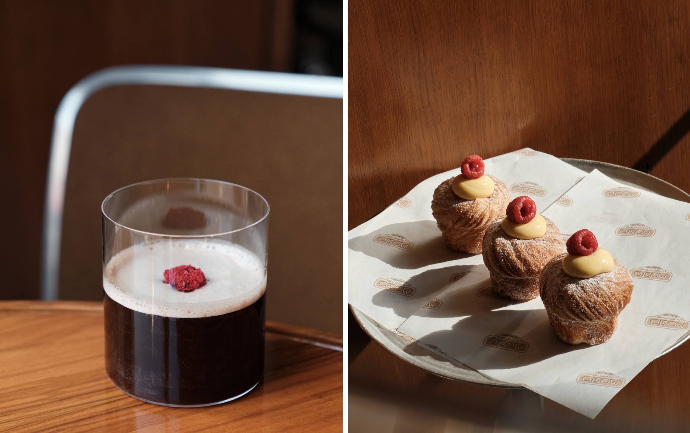 Mosto — городское кафе на каждый день с кондитерской и большой кофейной картой. Бренд-шеф Эмануэле Поллини и шеф-повар Маттео Лаи готовят простые и понятные блюда с итальянскими акцентами. Большое внимание уделили качеству продукта: фермерская рикотта, свежие овощи, итальянская мука для тонкой пиццы в римском стиле. В меню голубцы из савойской капусты с кроликом, цезарь с романо, бефстроганов — блюда, которые подойдут на каждый день. На большой кондитерской витрине торт Захер, тирамису, грушевый и персиковый тарты и крем-карамель. Каждый день в Mosto выпекают круассаны, краффины с ванилью и малиной, маритоццо алла панна, пан-о-шоколя и итальянское печенье. Завтраки подают до 12:00 по будням и 14:00 по выходным, утром в кафе можно заказать шакшуку алла пармиджано, фокаччу с ветчиной из индейки и фриттату на завтрак. В меню от бренд-шефа по кофе Анастасии Плескацевич баланс классики и авторских напитков. Также на завтрак можно выбрать фруктовым смузи, свежие соки и иммунные шоты. Помимо традиционных итальянских аперитивов, в коктейльной карте есть раздел Signature Cocktails, где бар-менджер Константин Диденко собрал напитки из 2010-х годов, переживающие ренессанс. Винная карта от бренд-сомелье Дмитрия Кипелкина и сомелье Александры Ефремовой предлагает легкие и освежающие итальянские сорта.