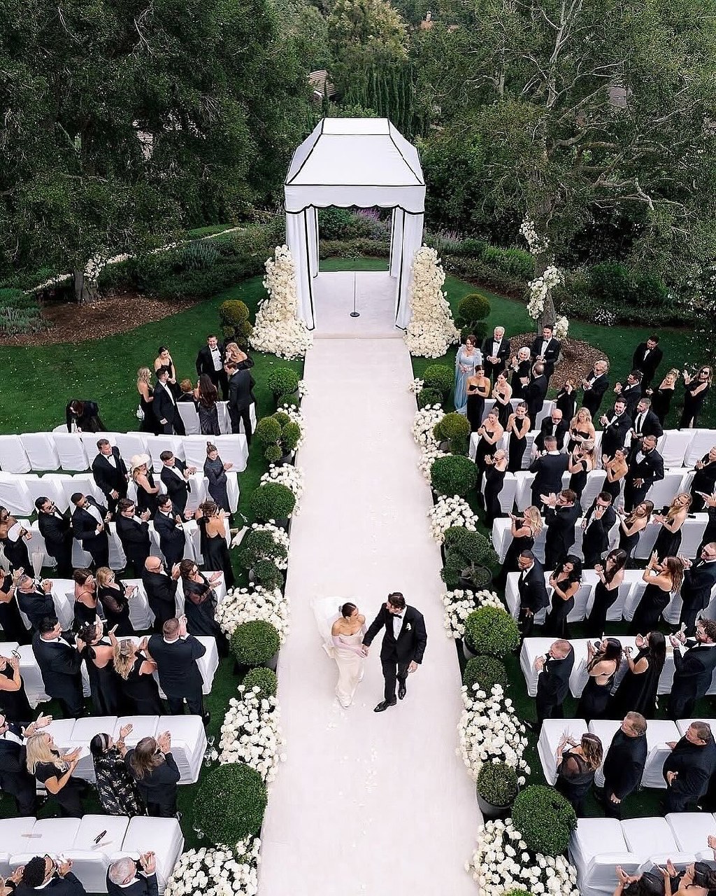 28-летняя звезда и 29-летний спортсмен вступили в брак 31 мая. Молодые люди живут в Лос-Анджелесе, однако свадебную церемонию провели вдали от шумного города — в калифорнийском Монтесито. Торжество прошло в пышных садах отеля San Ysidro Ranch, на нем была воссоздана атмосфера старого Голливуда. Хейли шла к алтарю в атласном корсетном платье без бретелек от Tamara Ralph, образ она дополнила полупрозрачными оперными перчатками и фатой из французского кружева шантильи. Джош выбрал классический образ — черный смокинг Tom Ford.