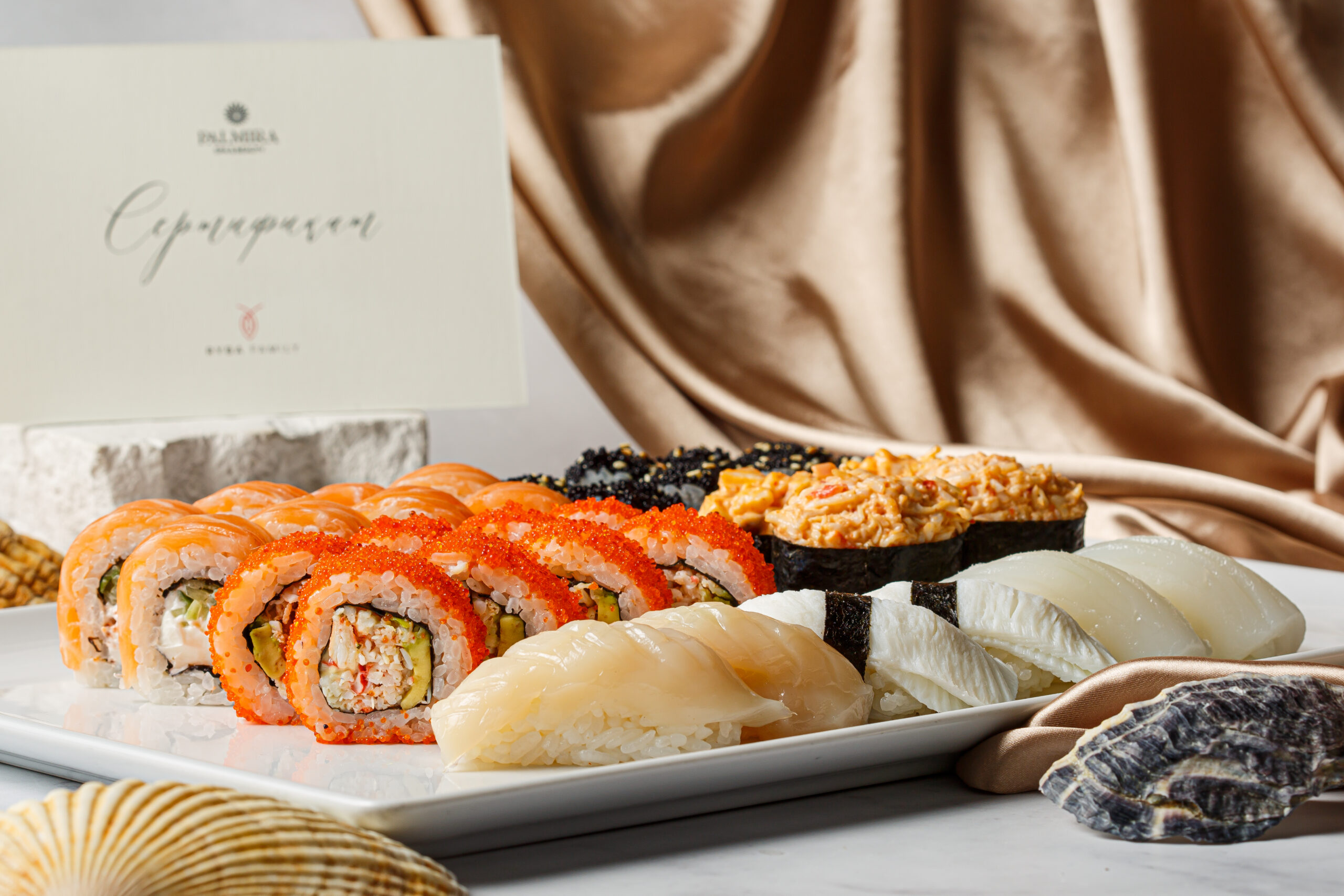 Сет отправит гостей в гастрономическое путешествие по самым популярным блюдам Ryba Family (Усачева, 26): ролл Калифорния, ролл The 21, ролл Филадельфия, гункан тако (осьминог), гункан краб, суши хотатэ (морской гребешок), суши ика (кальмар), суши тако (осьминог). При заказе сета можно получить скидку на проживание в Palmira Art Hotel, а также принять участие в розыгрыше подарков.