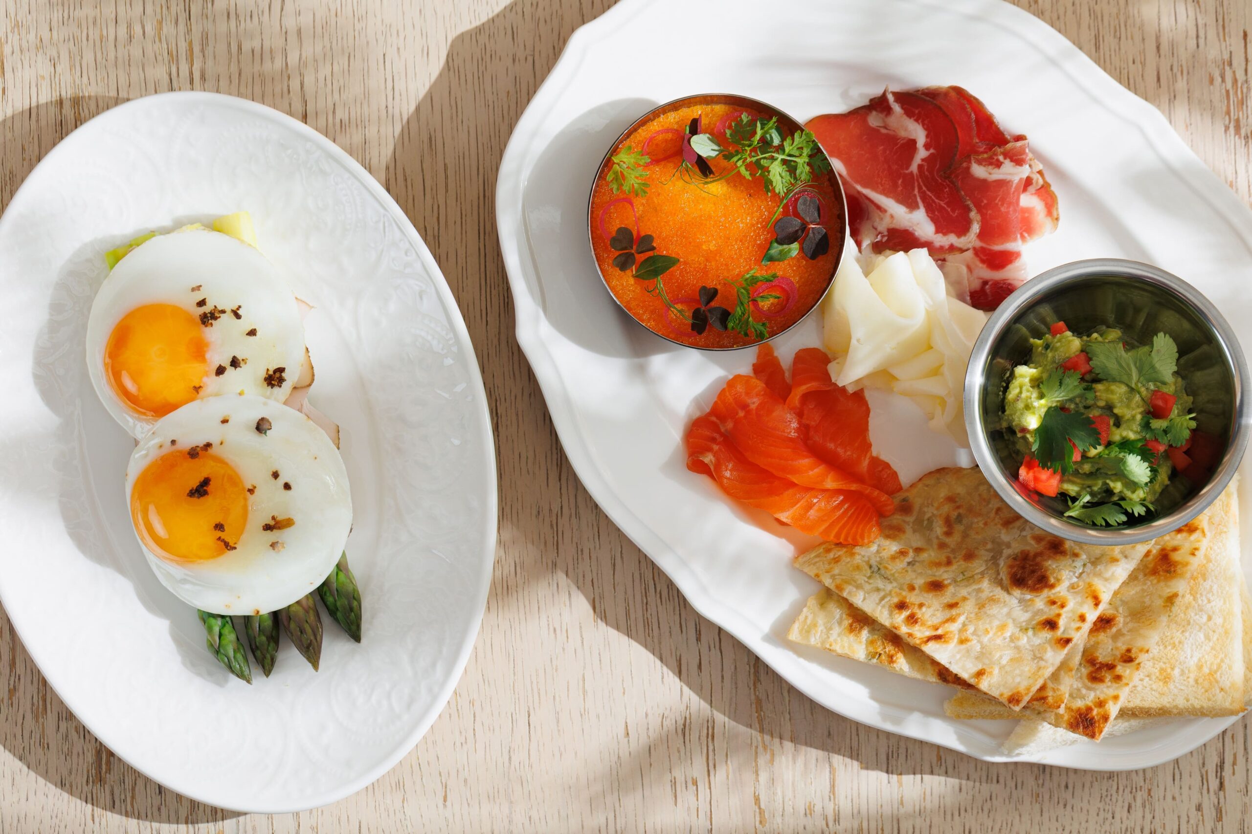 Главная позиция среди обновлений — фирменный «завтрак YURA», отмеченный в меню значком HIT, состоящий из двух тарелок — горячей и холодной. На холодной тарелке — икра сига с укропом и крем-чизом, гуакамоле, лосось гравлакс, сыры с пажитником, коппа и свежие лепешки ротти и тосты. Горячая закуска — спаржа на гриле с пастрами из индейки и глазуньей из двух яиц с хрустящей крошкой из таллинского хлеба. Идеально для двоих!
