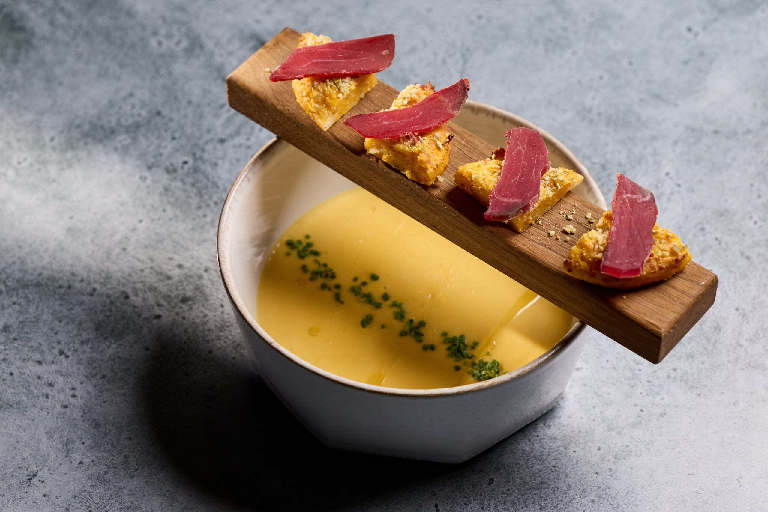 Для российского ресторанного фестиваля «Новые имена», который проходит уже в восьмой раз, шеф-повар винного бистро Nouge (Покровка, 10, стр. 1) Андрей Симаков подготовил пять ярких позиций с акцентом на колоритность семейных рецептов, добавив авторское прочтение в знакомые всем сочетания. Среди закусок — оладьи с тремя видами икры и домашней сметаной по рецепту бабушки шефа и шпроты с красным луком, тартином и соусом сальса верде, вдохновленные «папиным бутербродом» с авангардным сочетанием. Самым согревающим блюдом сета стал «Мамин борщ с томленой щечкой», который подается с гужерами — сырными булочками со смальцем. На десерт — конфета «Бородинский трюфель» — яркий сладкий акцент с узнаваемым хлебным вкусом из детства. Попробовать сет можно ежедневно до 15 октября.