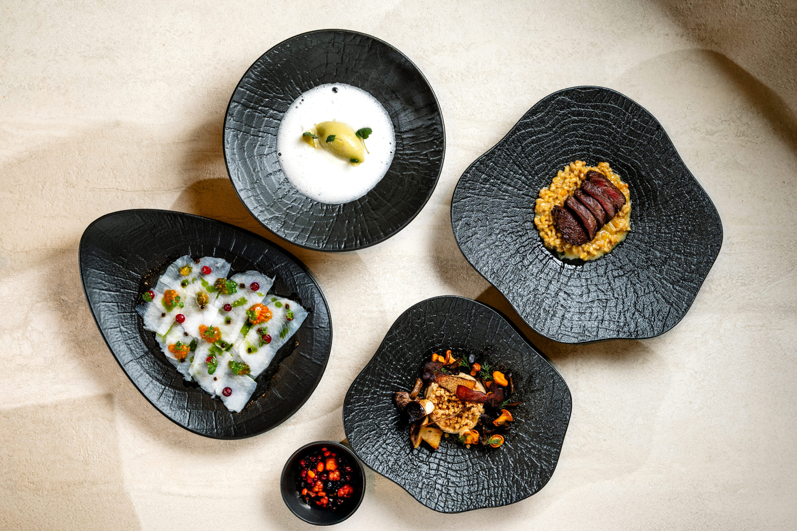 До 15 октября можно попробовать фестивальное меню «Новые имена». Так, в LOOK UP Cafe&Shop (Садовническая, 9А) сет вдохновлен кухней Дальнего Севера. Шеф-повар Александр Пантюхов создал четыре блюда на основе локальных фермерских ингредиентов — севиче из муксуна с томатной водой, ферментированным чесноком и моченой брусникой; саламат из гречки с лесными грибами и дикоросами; кедровая каша с олениной, подкопченной на можжевеловых ветках и сорбет из яблока и еловых побегов с моченым яблоком.