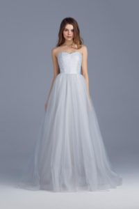 Пышное свадебное платье с мягким корсажем из королевского испанского жаккарда, вышитым серебряной нитью, пышная юбка из французского фатина с легким шлейфом