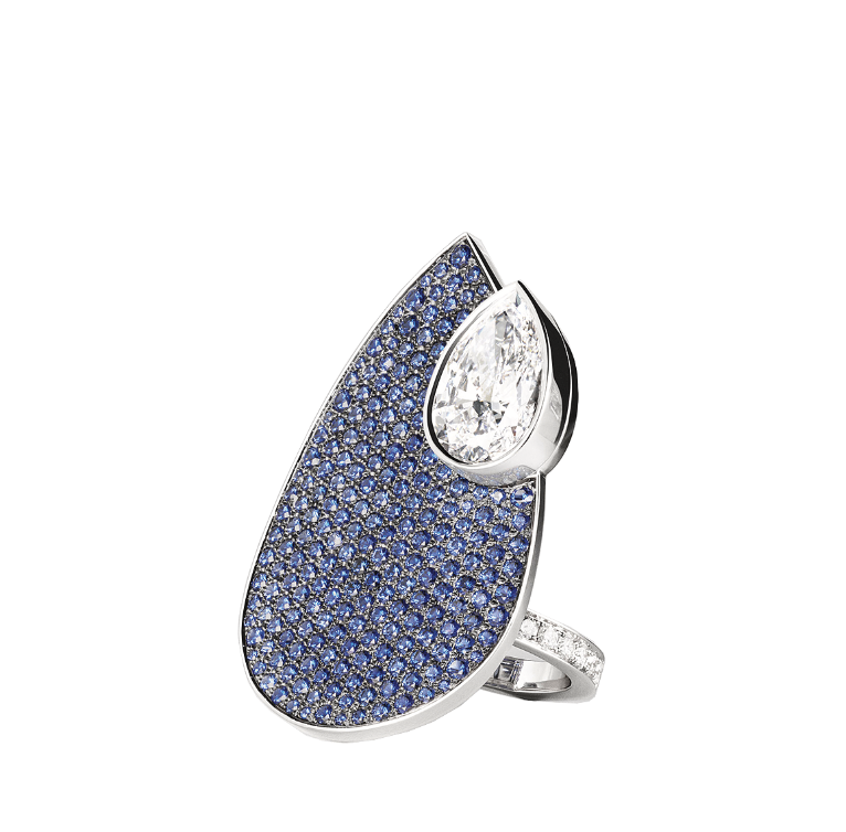 Hermes, кольцо Miroir d’ombre, белое золото, сапфиры, бриллианты