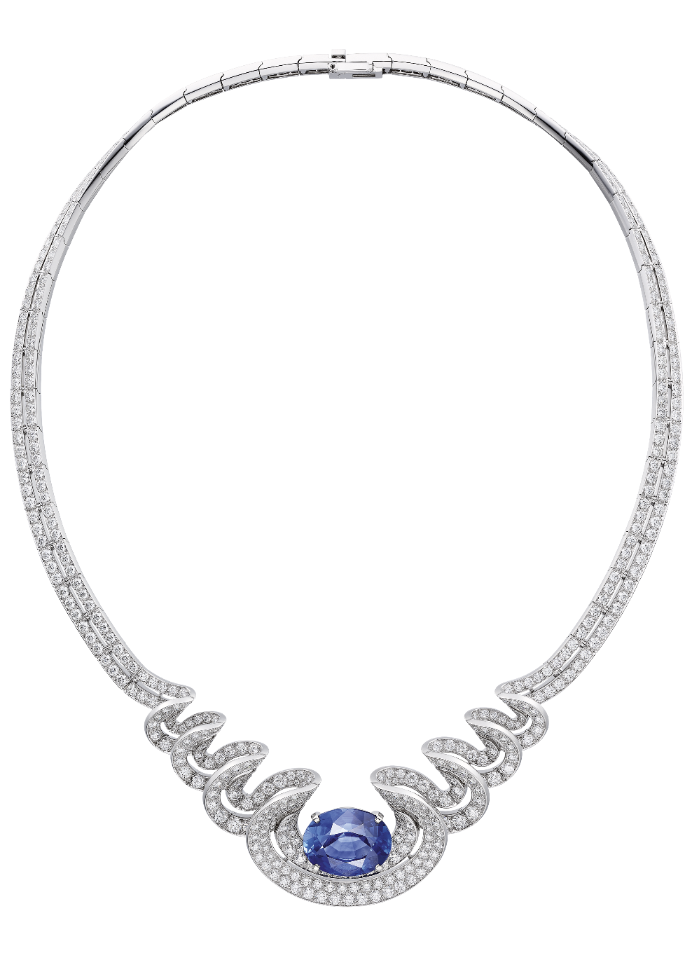 Сartier, колье Sama, Le Voyage Recommence, белое золото, сапфир, бриллианты