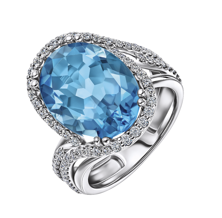 Miuz Diamonds, кольцо Empire, белое золото, топаз, бриллианты