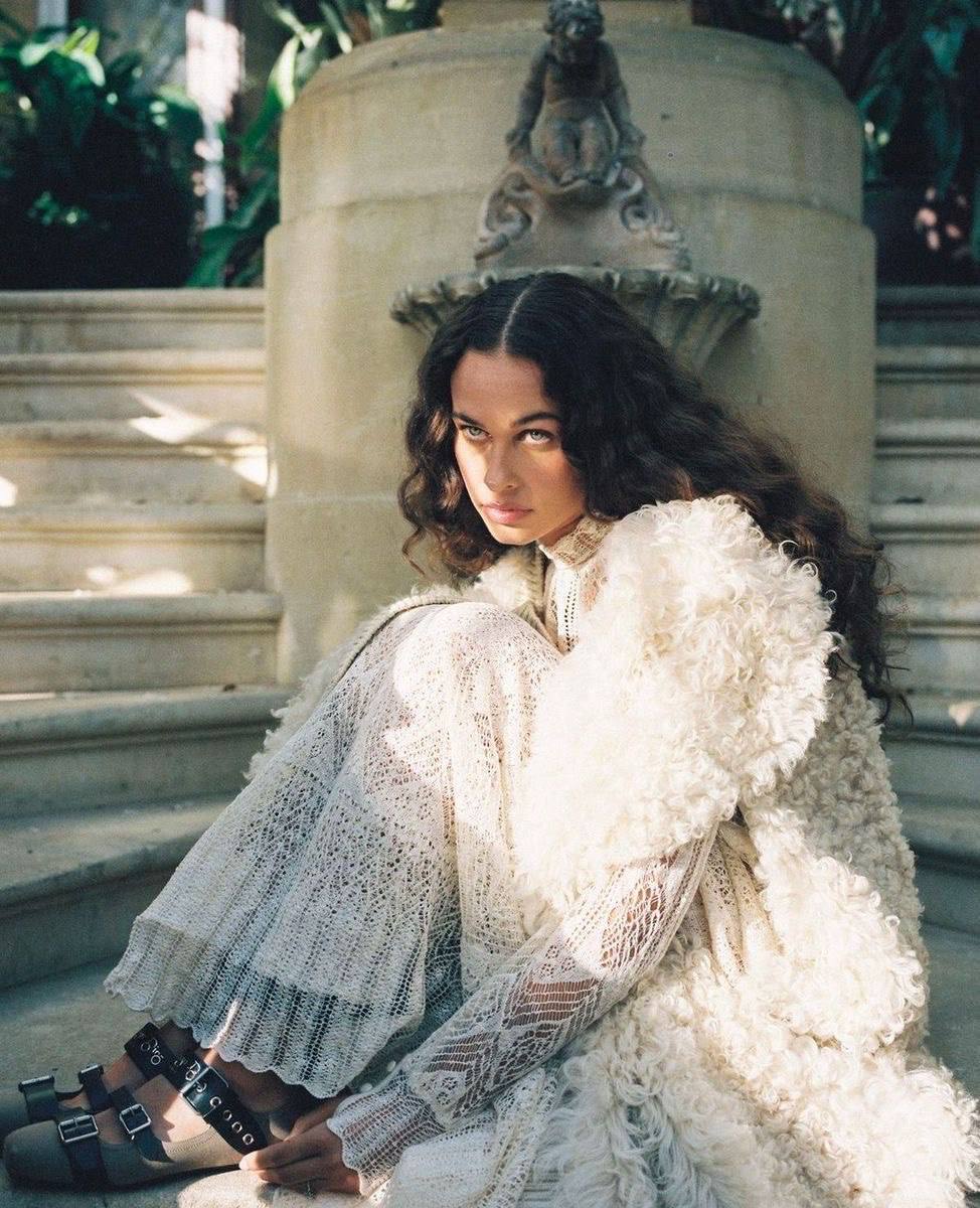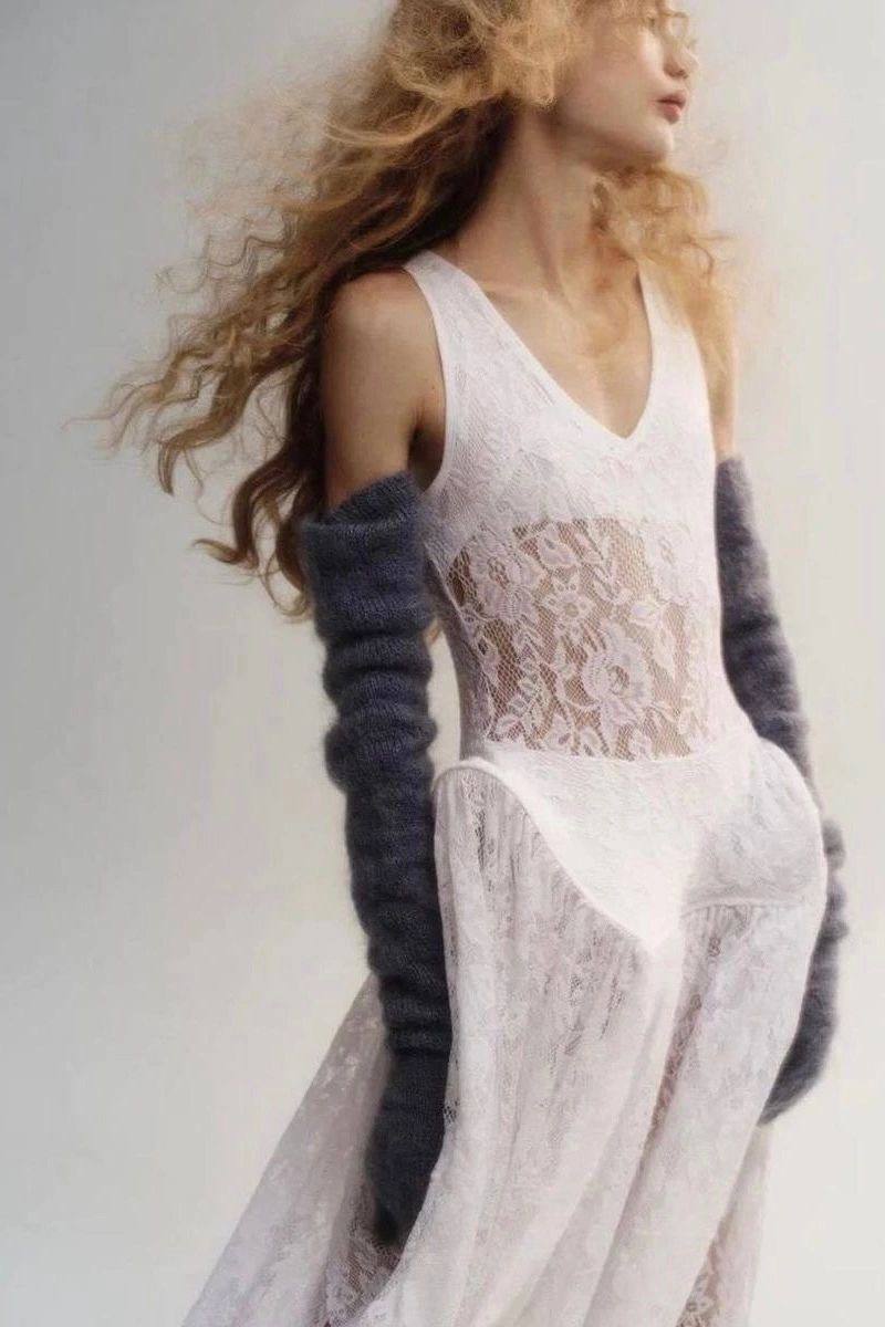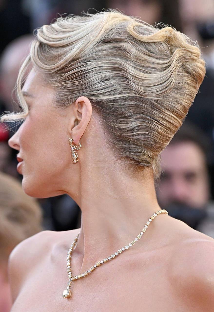 Если в зоне декольте много мелких элементов или кружева, то нужно делать ставку на укладку с воздушной текстурой. Здесь акцент на пушистости и мелком завитке. Такую укладку следует аккуратно вычесать, используя минимальное количество стайлинга, при этом лицевую зону и пробор проработать спрей-воском, чтобы не было ощущения неряшливости.
