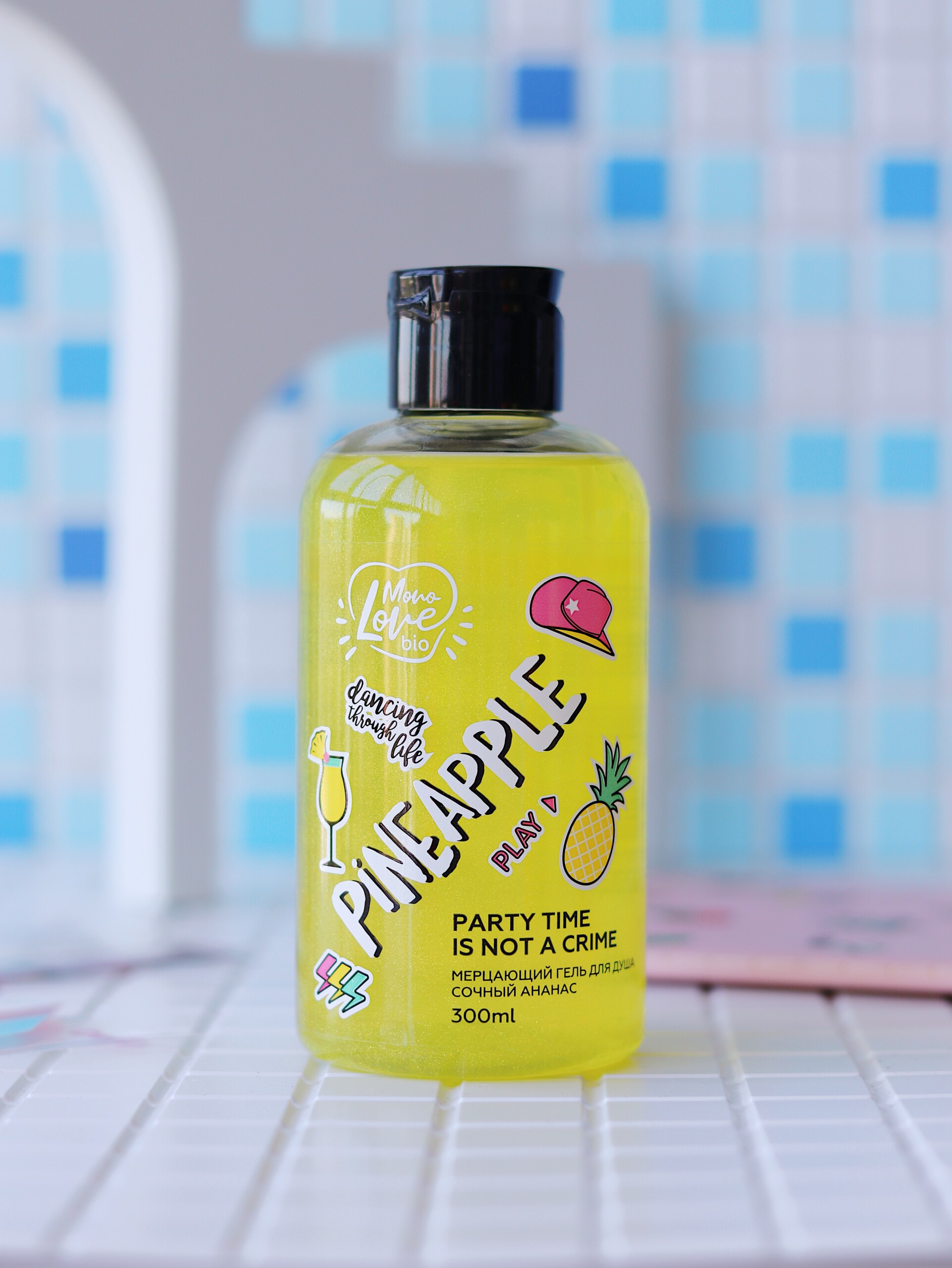 Мерцающий гель для душа Pinapple-Jamaica Monolove Bio нежно и при этом эффективно очищает тело. Экстракт ананаса придает коже гладкость и упругость. Пантенол ускоряет процессы заживления, витамин В3 увлажняет и стимулирует выработку коллагена. А еще средство поднимает настроение благодаря бодрящему аромату и необычной текстуре, содержащей тысячи сверкающих частиц. В этой серии выходит также скраб парфюм.