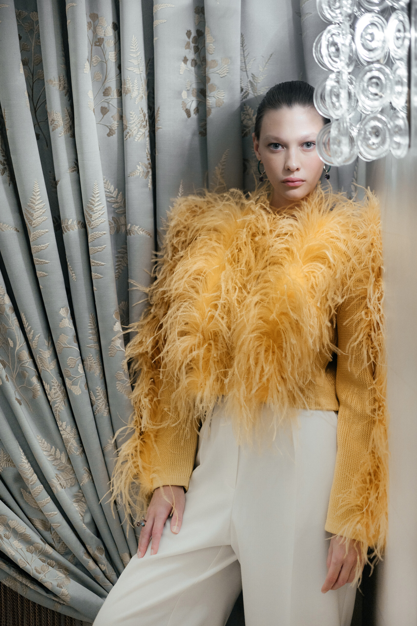 Туника, брюки и чокер плиссе Ushatava, серьги, кулон и колье Chopard, Mercury