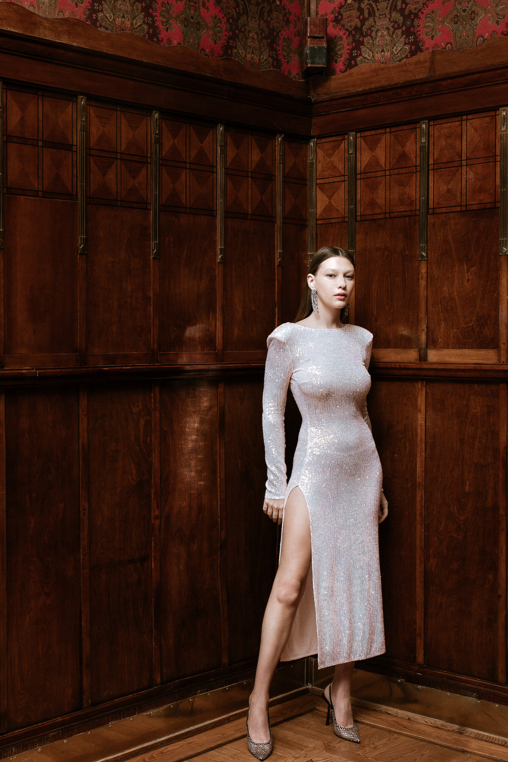 Платье 404 Not Found, туфли Le Silla, cерьги Mercury