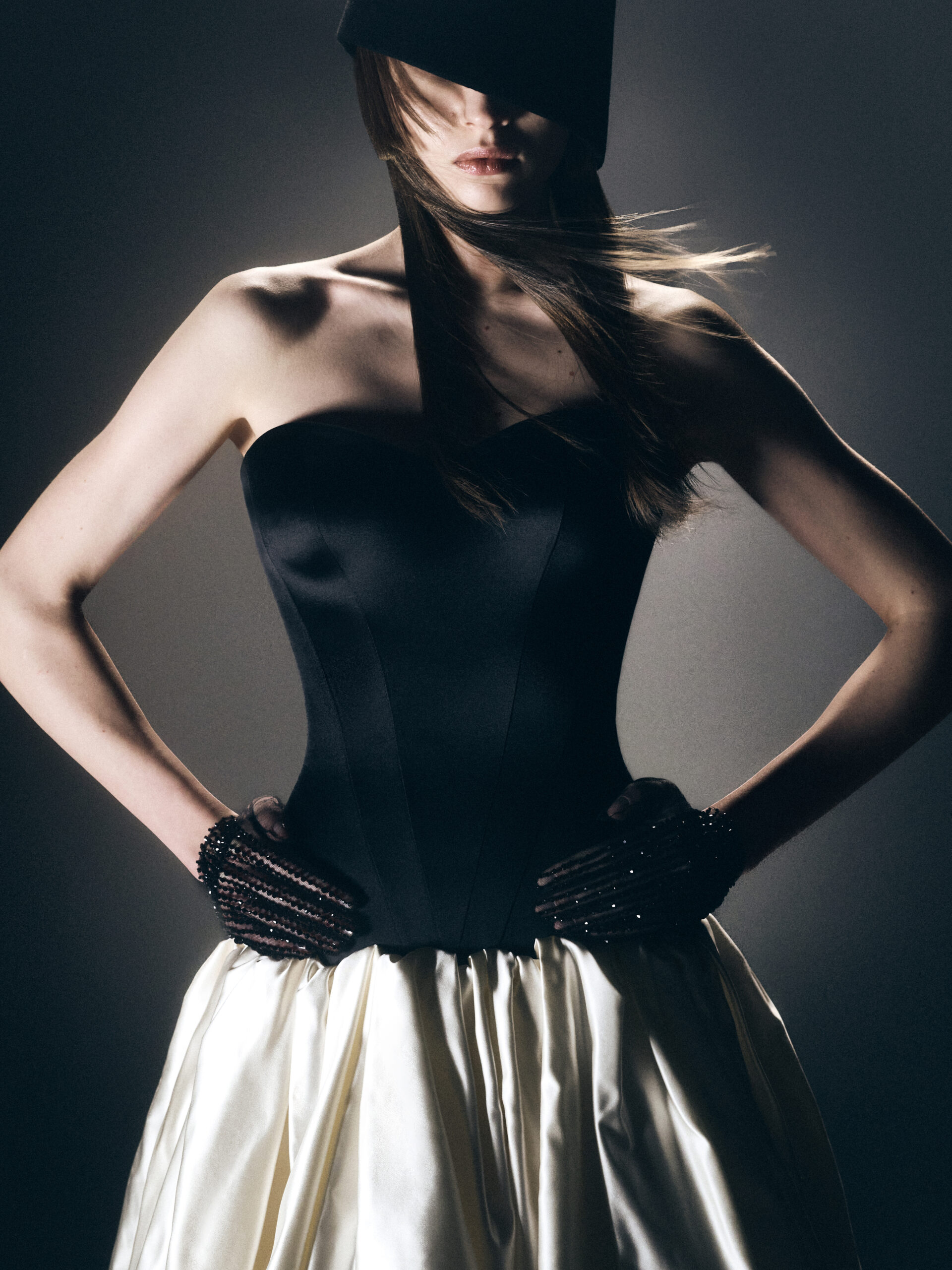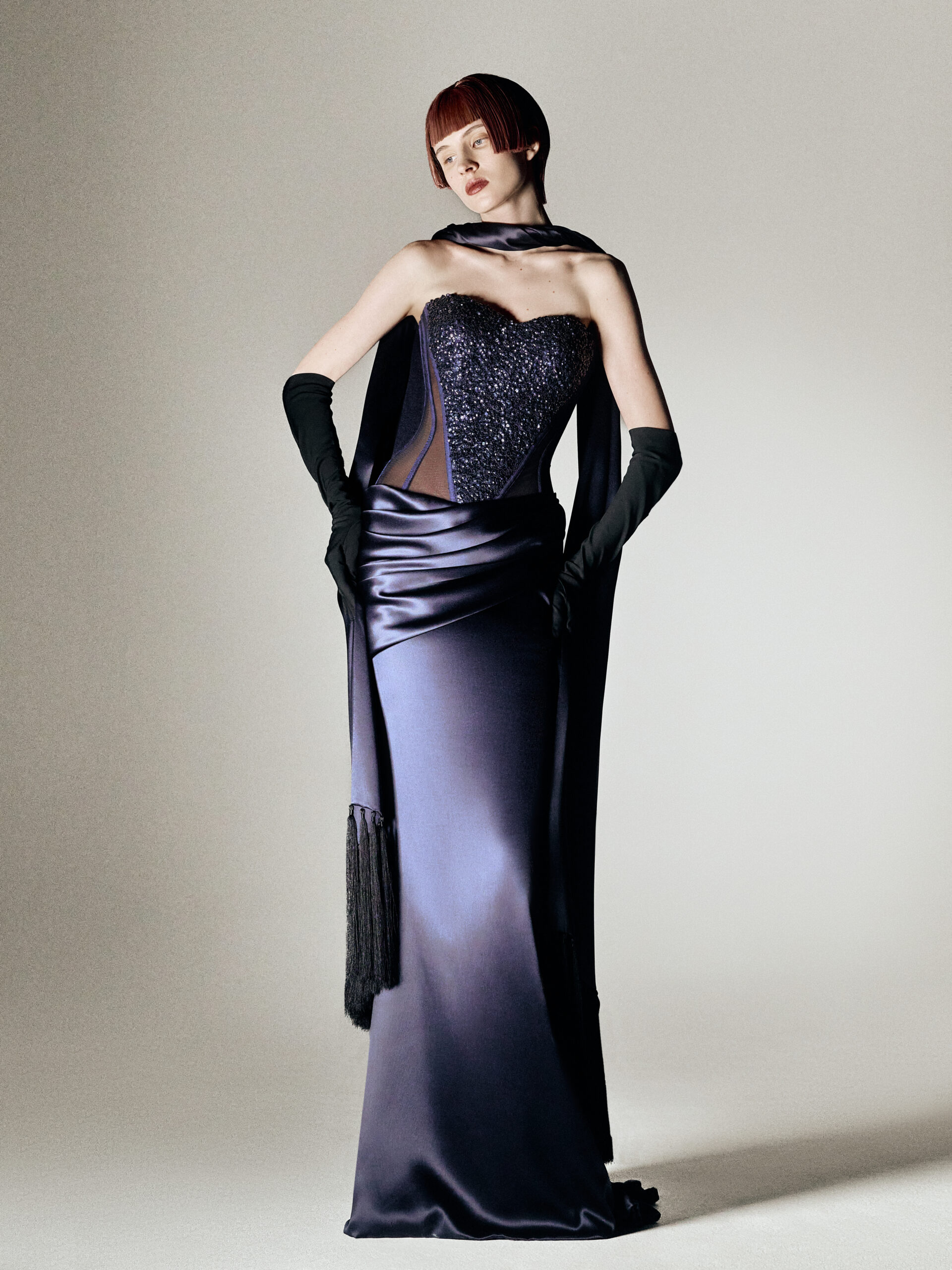 Эта коллекция — диалог между кутюрной традицией и современной интерпретацией вечернего гардероба. Все изделия выполнены из натуральных тканей, преимущественно — шелка разной плотности, что подчеркивает стремление Дома к бескомпромиссному качеству.