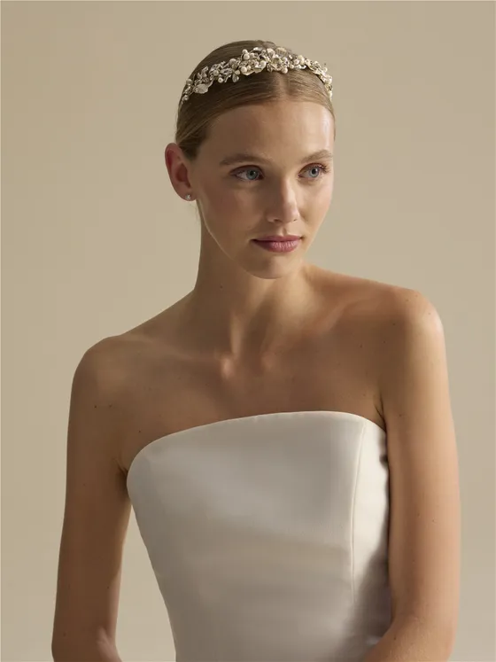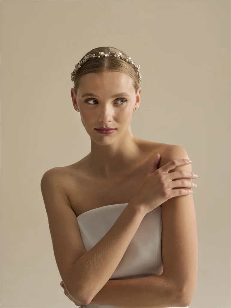 Удачная и комфортная альтернатива классической фате — ободок. Изысканный аксессуар для волос мгновенно превращает любой, даже самый минималистичный образ, в законченный шедевр. В моде не простые лаконичные обручи, а сложные конструкции, часто объемные, украшенные цветами, жемчугом, бисером или сеткой, закрывающей лицо как вуаль. Они идеально сочетаются с собранными прическами, подчеркивая линию шеи и добавляя образу нотку сказочности.