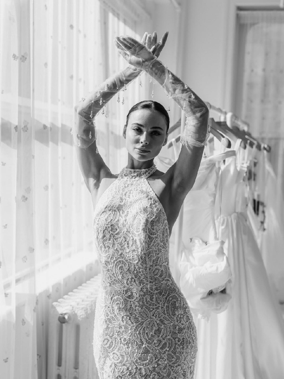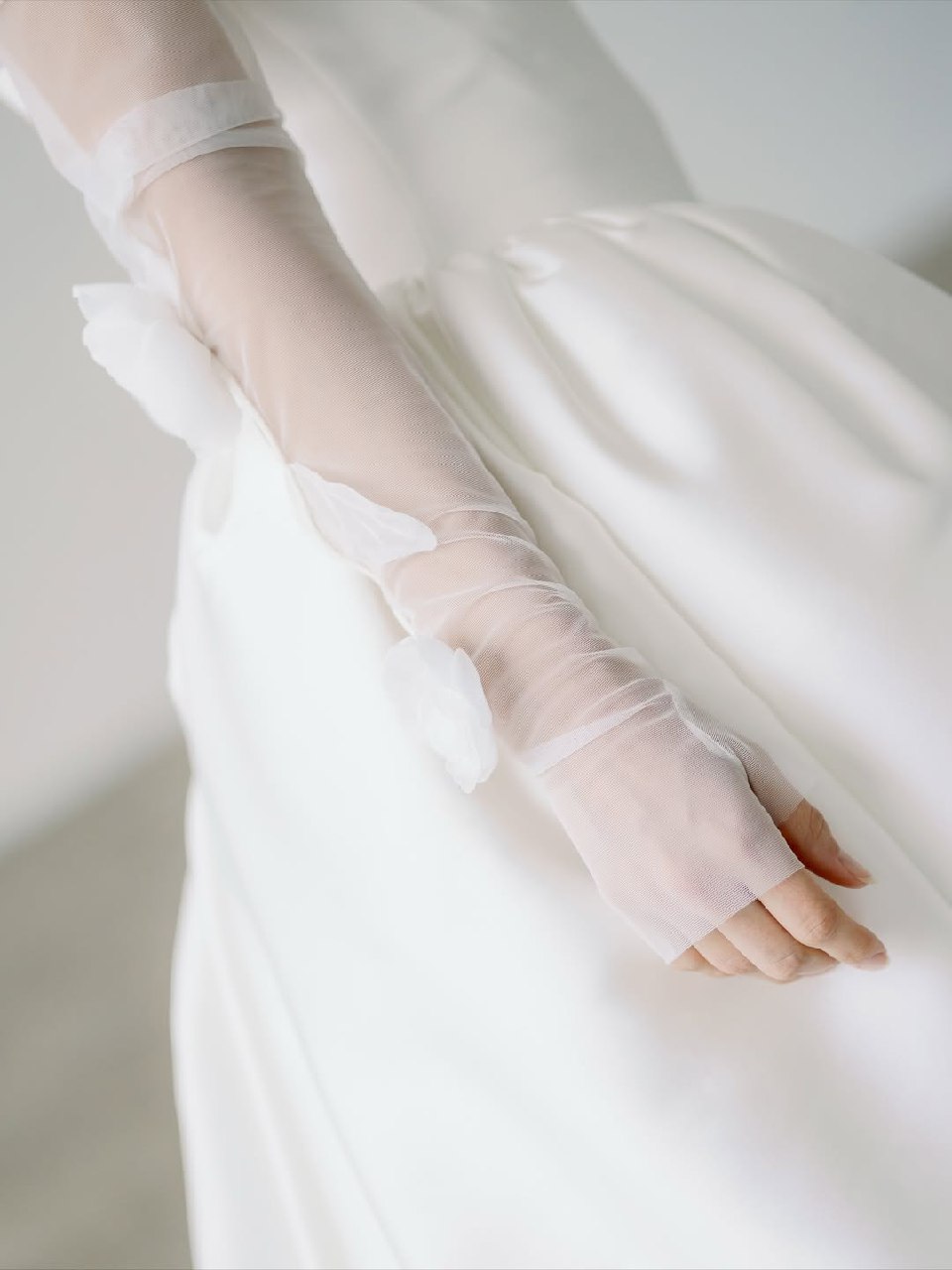 Возвращение перчаток — смелый и эффектный тренд последних нескольких сезонов. Дизайнеры доказали, что этот аксессуар может быть разным: от укороченных кружевных моделей, до длинных оперных вариаций, создающих контраст с белоснежным платьем. Такая деталь добавляет наряду загадочности и элегантности, приковывает внимание к жестам, делая каждое движение невесты еще более выразительным. Если этим летом были в тренде плотные и облегающие перчатки, то в будущем сезоне стоит обратить внимание на полупрозрачные варианты с легкой драпировкой.