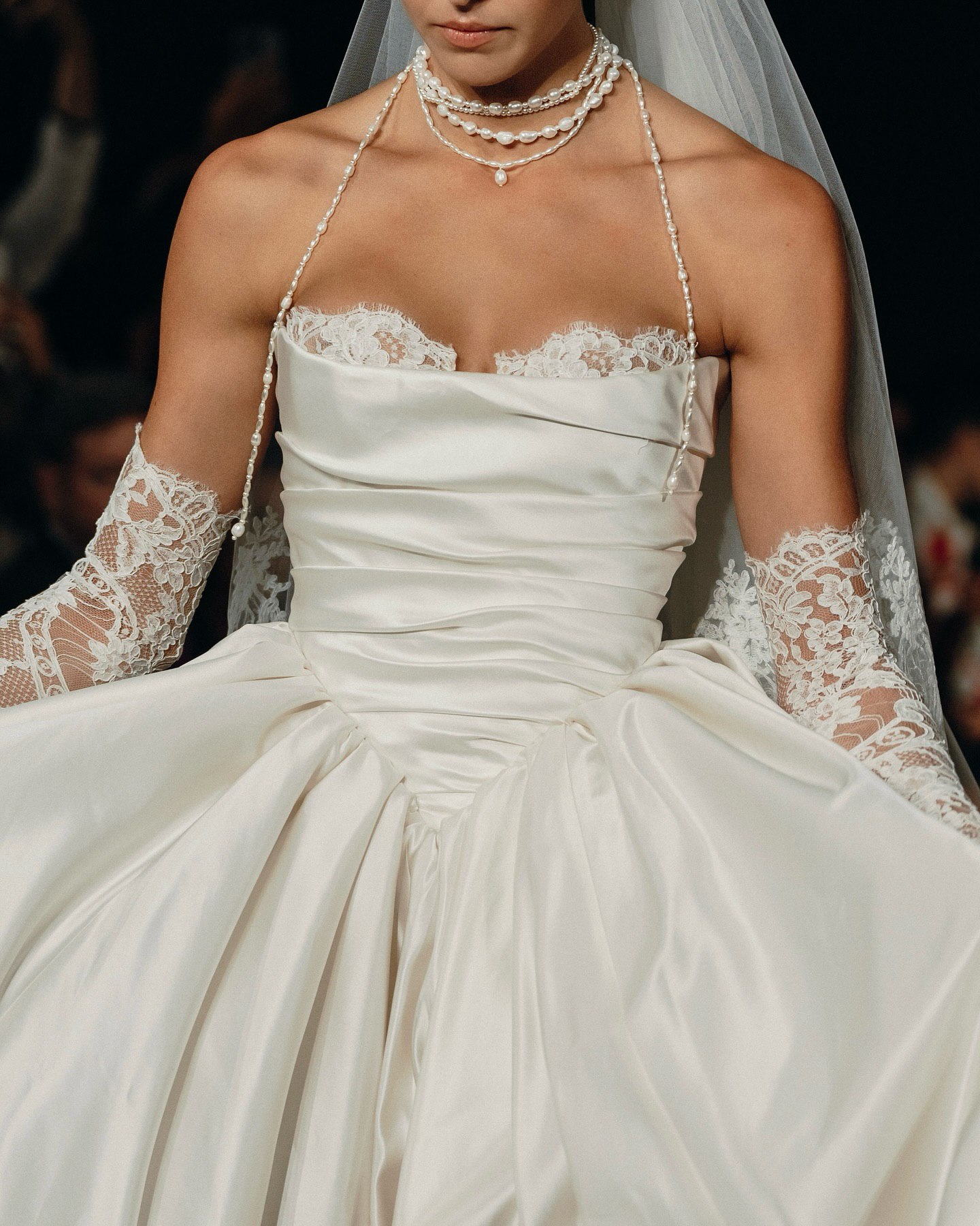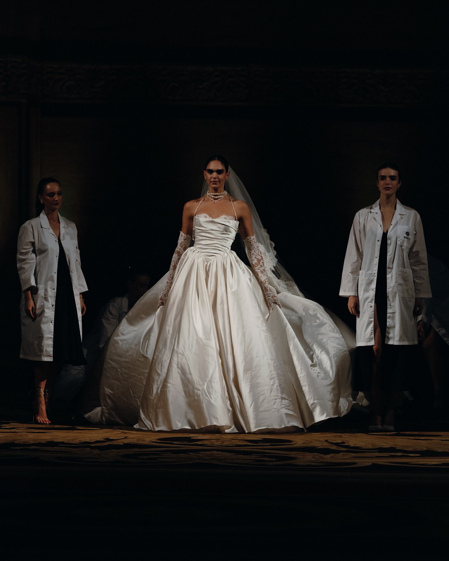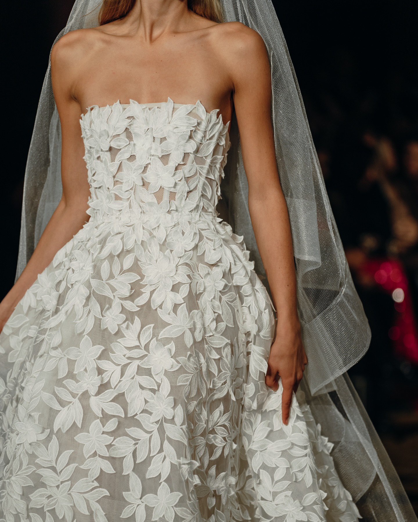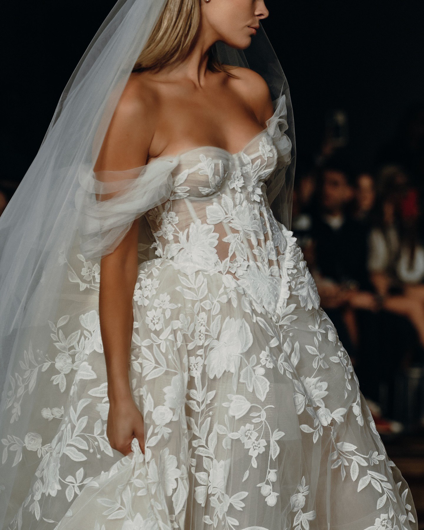 На кадрах с показа можно можно увидеть потрясающую аппликацию, элегантное кружево, эффектные драпировки из шелка и многое другое. Облегающие фигуру силуэты с выразительными шлейфами, соблазнительные вырезы на спине, кружевные перчатки — уже стали визитной карточкой Berta Bridal. Каждое платье в коллекциях бренда особенное и способно одним своим видом преобразить свадебную церемонию.