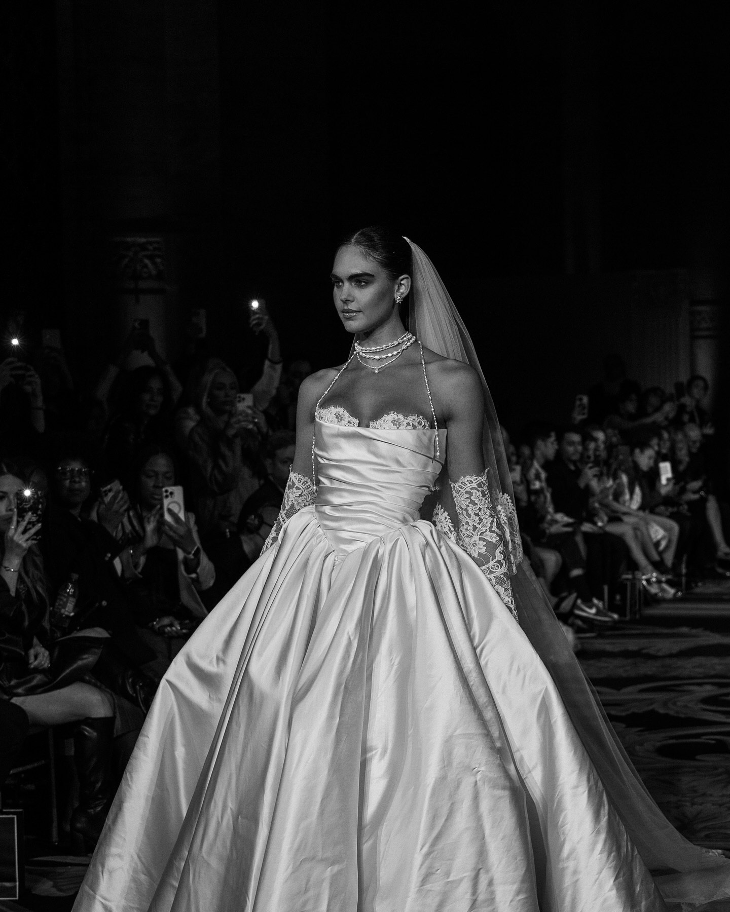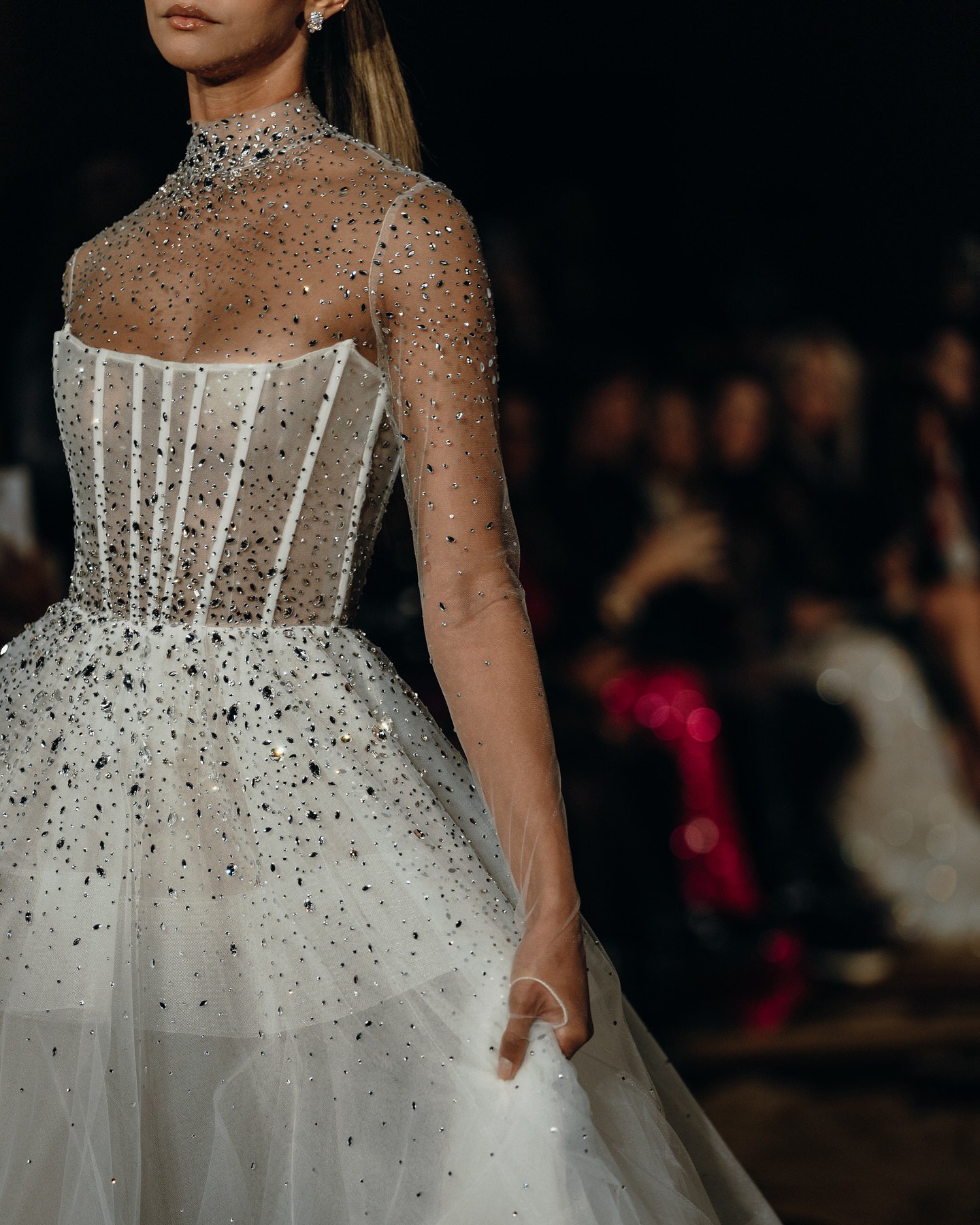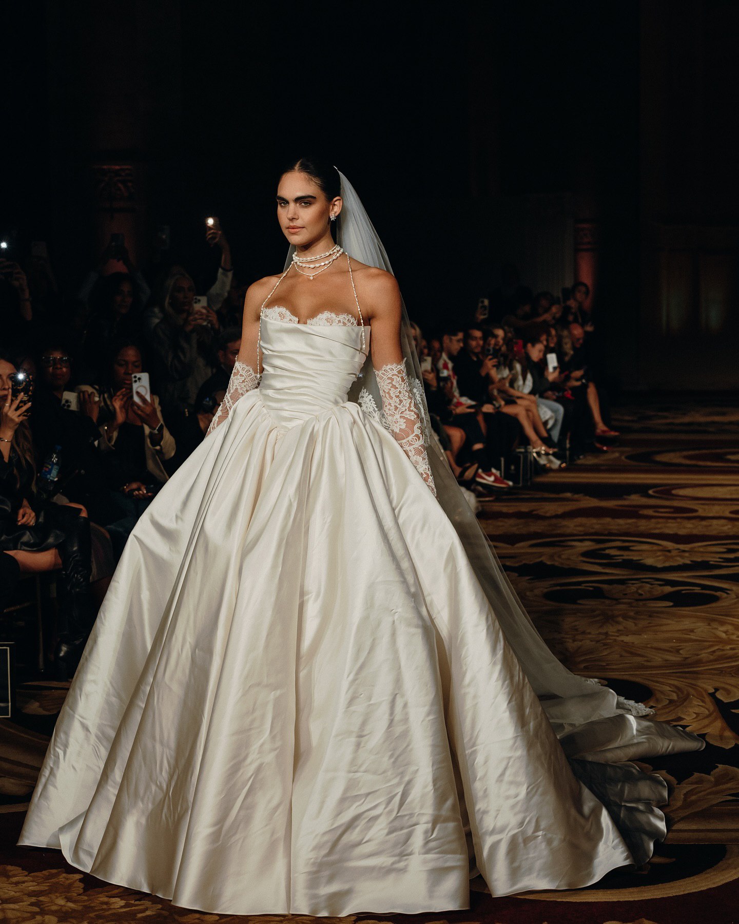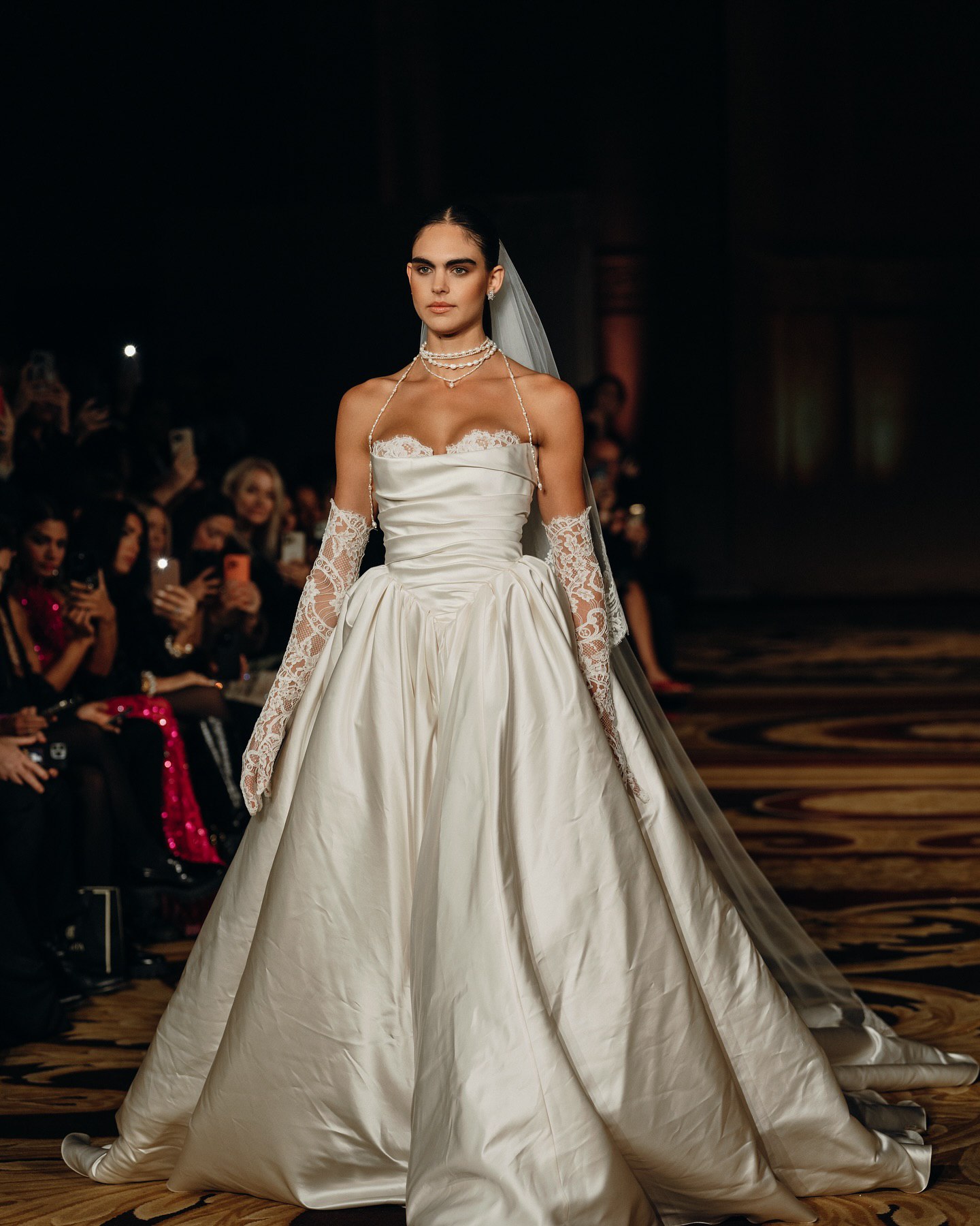 На кадрах с показа можно можно увидеть потрясающую аппликацию, элегантное кружево, эффектные драпировки из шелка и многое другое. Облегающие фигуру силуэты с выразительными шлейфами, соблазнительные вырезы на спине, кружевные перчатки — уже стали визитной карточкой Berta Bridal. Каждое платье в коллекциях бренда особенное и способно одним своим видом преобразить свадебную церемонию.