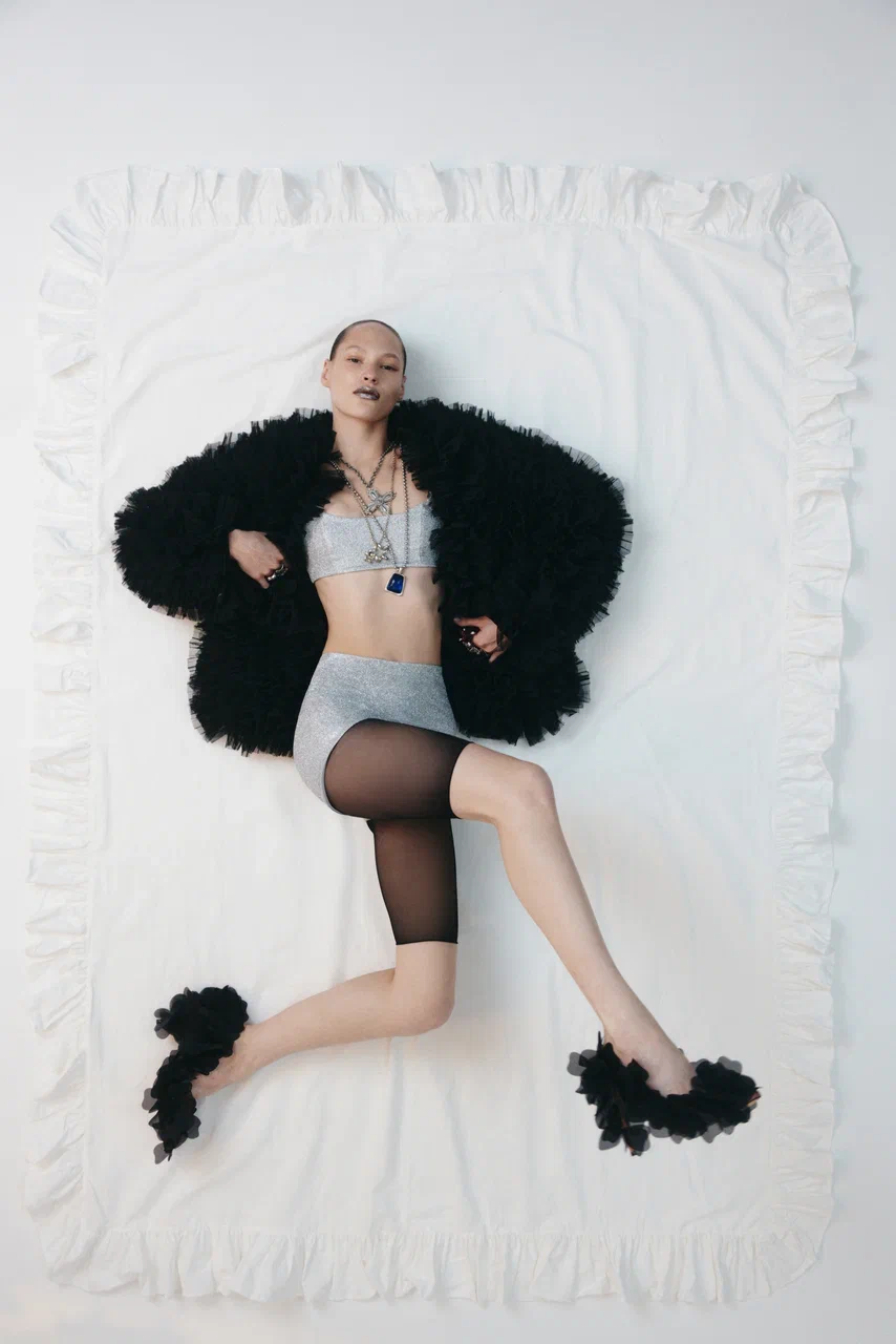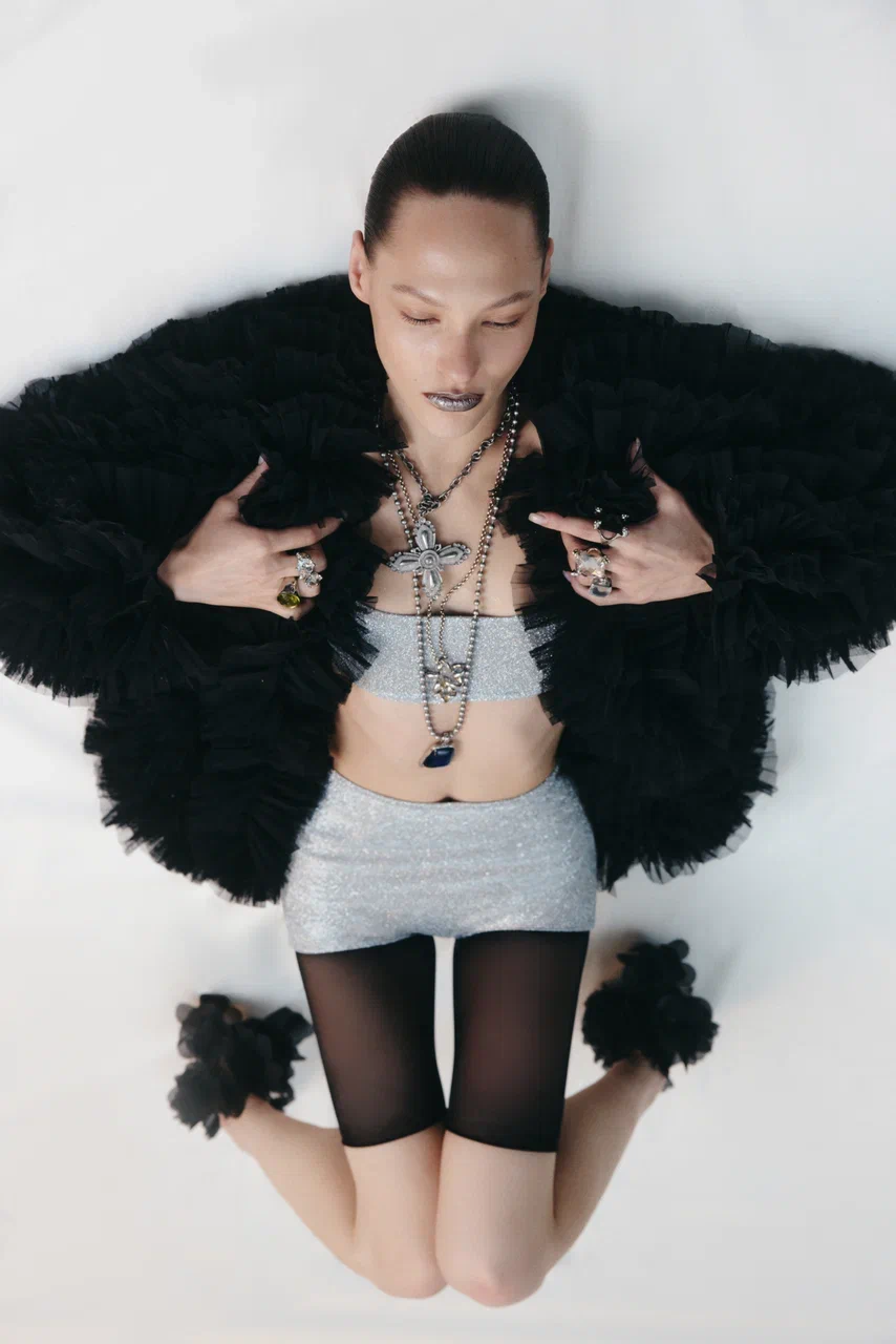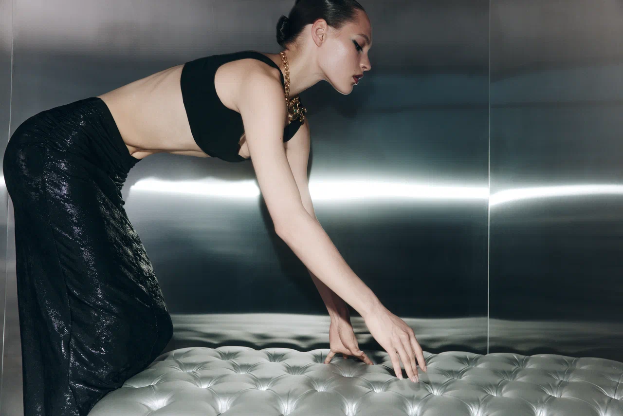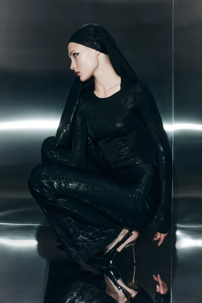 Все изделия выполнены из черного бифлекса с едва заметным змеиным принтом — боди с высоким вырезом (10 900 руб.), брюки клеш (14 900 руб.), макси-юбка (19 900 руб.) и мини-платье (19 900 руб.). Для тех, кто хочет добавить блеска, бренд выпустил линейку MAGNETIC SILVER EDITION. Мини-платье с драпировками (19 900 руб.) можно носить как самостоятельную единицу, так и стилизовать легинсами с открытой пяткой (9 900 руб.). Ограниченным тиражом выпущен комплект из топа и микрошортов, усыпанных блестками (каждые изделие по 7 900 руб.) — идеальный наряд для самой яркой вечеринки. Яркой частью коллекции стало платье-комбинация ALMOST TWENTIES (17 900 руб.) — эхо эпохи Гэтсби. Лаконичный крой компенсируется эффектной тканью с бахромой, отсылающей к стилю гламурных двадцатых годов. «При создании праздничной коллекции мы стремились подняться на новый уровень, — рассказывает соосновательница бренда Галя Глинская. — Большая часть дропа отшита из премиальных тканей, которые мы очень долго отбирали и заказывали напрямую из Италии».