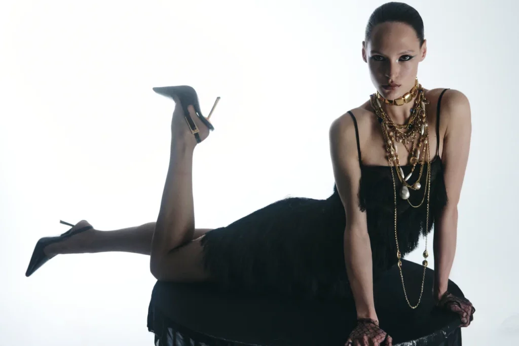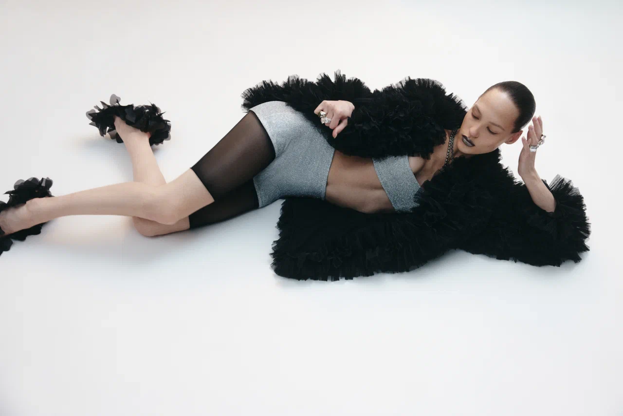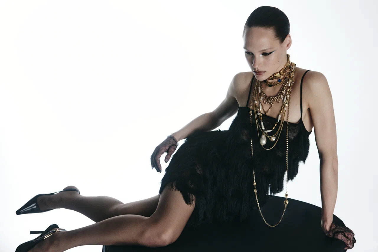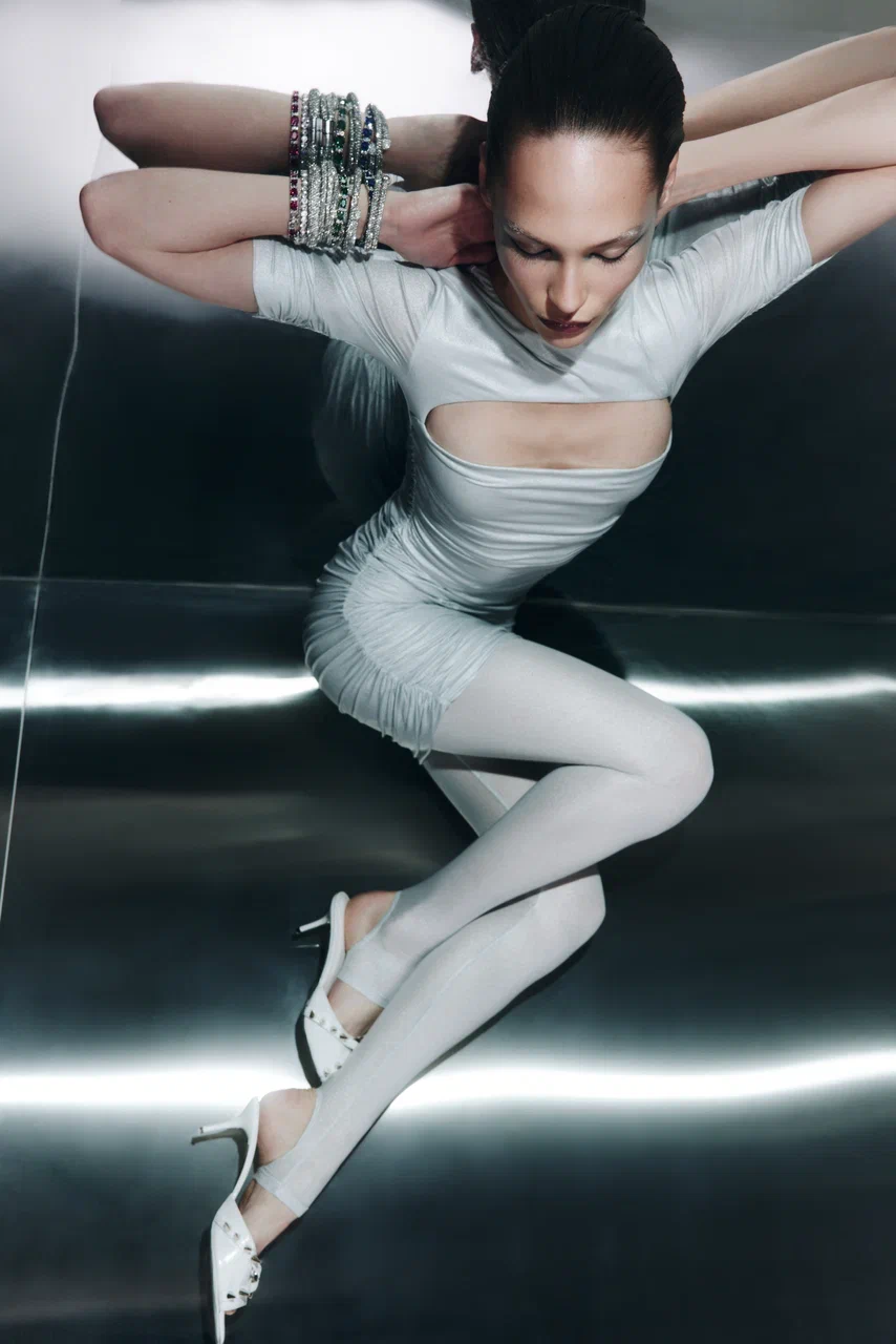 Все изделия выполнены из черного бифлекса с едва заметным змеиным принтом — боди с высоким вырезом (10 900 руб.), брюки клеш (14 900 руб.), макси-юбка (19 900 руб.) и мини-платье (19 900 руб.). Для тех, кто хочет добавить блеска, бренд выпустил линейку MAGNETIC SILVER EDITION. Мини-платье с драпировками (19 900 руб.) можно носить как самостоятельную единицу, так и стилизовать легинсами с открытой пяткой (9 900 руб.). Ограниченным тиражом выпущен комплект из топа и микрошортов, усыпанных блестками (каждые изделие по 7 900 руб.) — идеальный наряд для самой яркой вечеринки. Яркой частью коллекции стало платье-комбинация ALMOST TWENTIES (17 900 руб.) — эхо эпохи Гэтсби. Лаконичный крой компенсируется эффектной тканью с бахромой, отсылающей к стилю гламурных двадцатых годов. «При создании праздничной коллекции мы стремились подняться на новый уровень, — рассказывает соосновательница бренда Галя Глинская. — Большая часть дропа отшита из премиальных тканей, которые мы очень долго отбирали и заказывали напрямую из Италии».