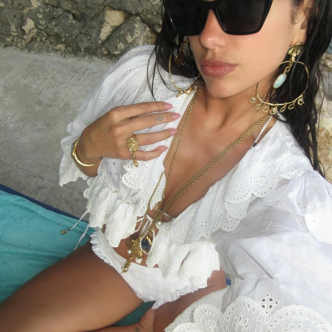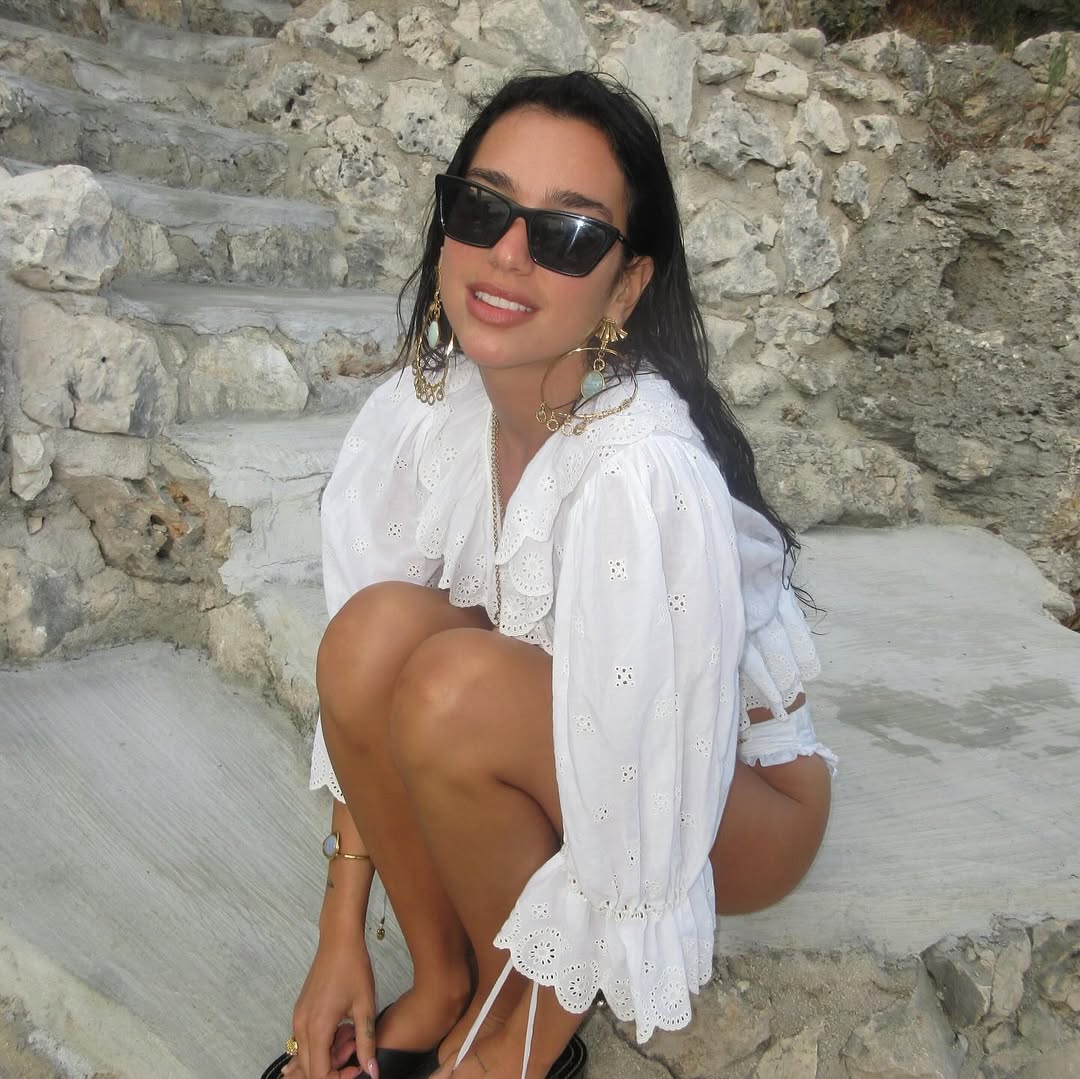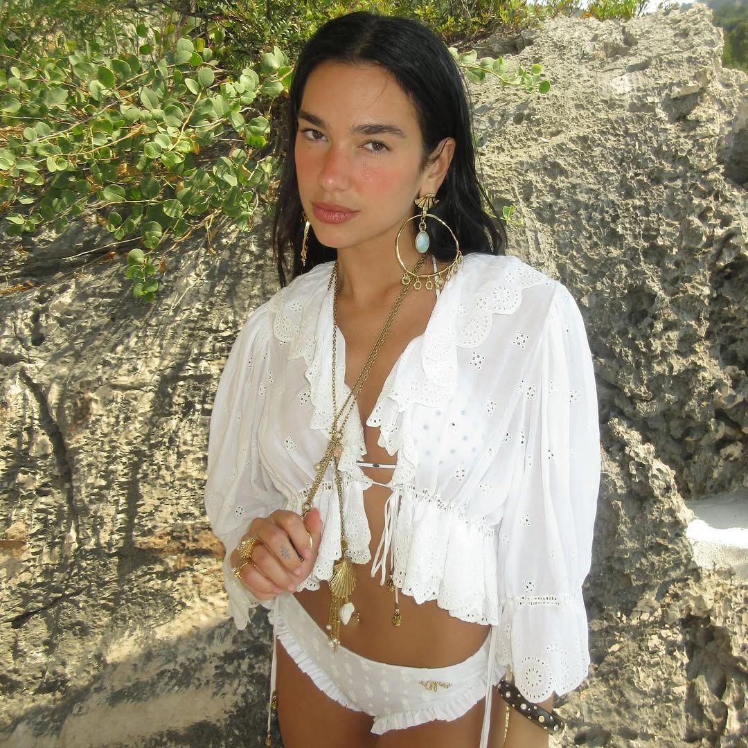 На одном из фото девушка позирует в белом бикини в горошек. Другой образ — ассиметричное кастомное платье Jacquemus, его специально для Липы сделал ее близкий друг — дизайнер Симон Порт Жакмюс. И третий аутфит — хлопковая блузка с рюшами и микрошорты. Звезда написала в соцсетях, что готовится к празднованию дня рождения, 22 августа ей исполняется 30 лет.