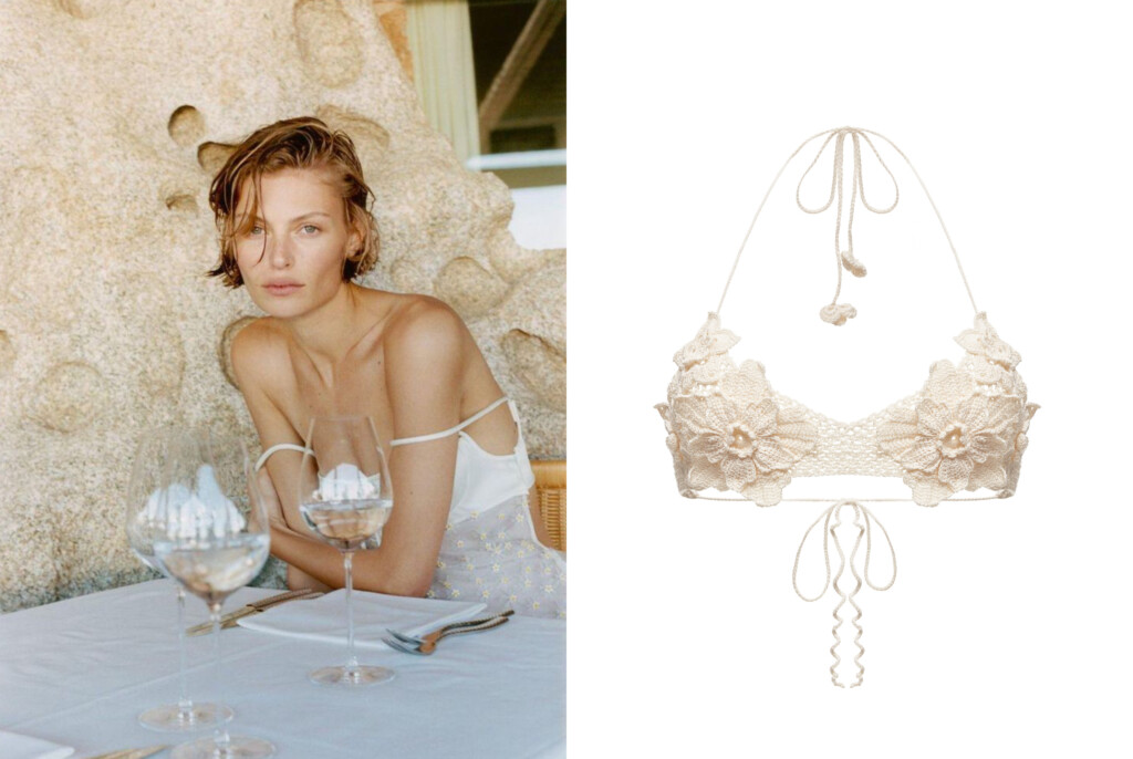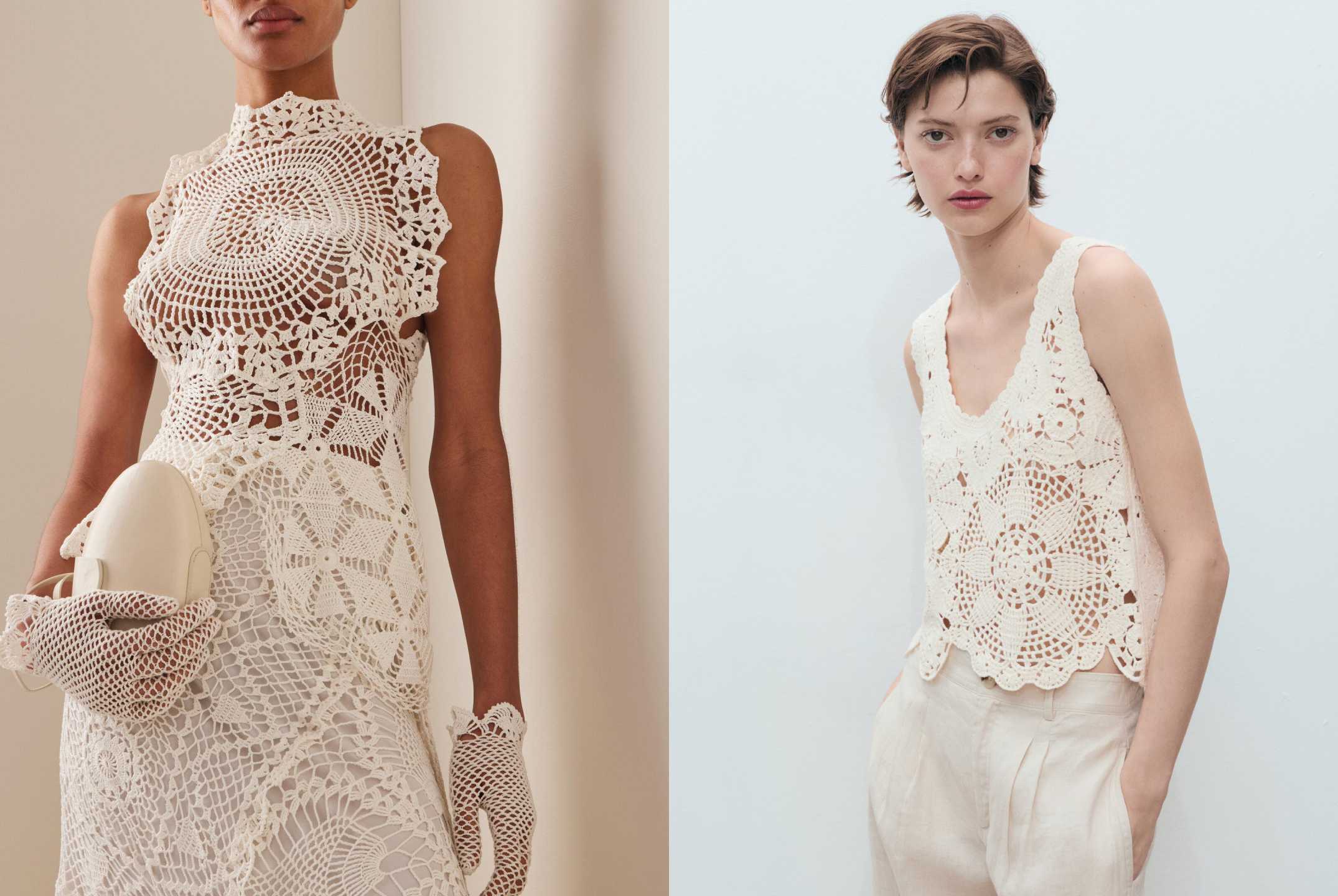 Топ кроше The Row, 151 000 рублей/ топ кроше Mango, 5 990 рублей