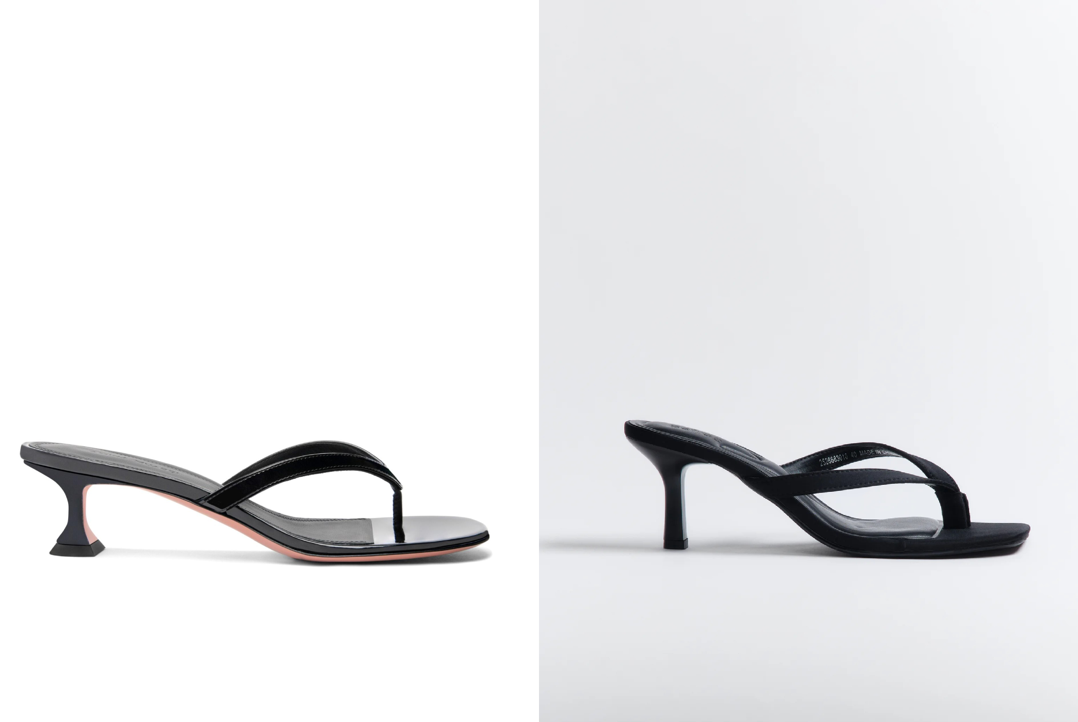 Мюли Amina Muaddi, 85 000 рублей/ мюли Befree, 2 999 рублей