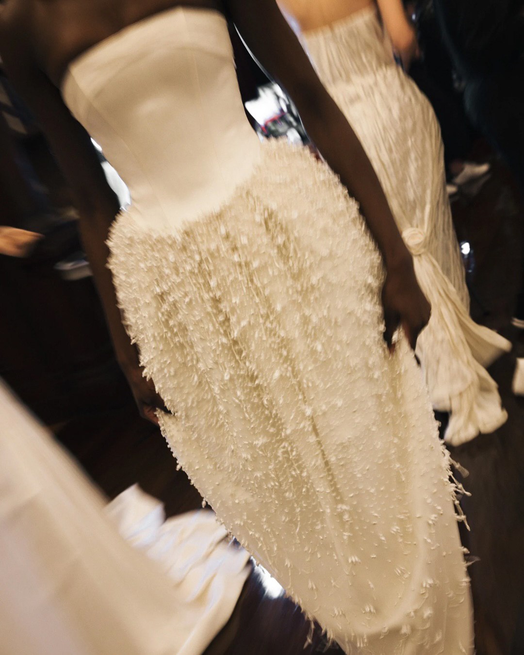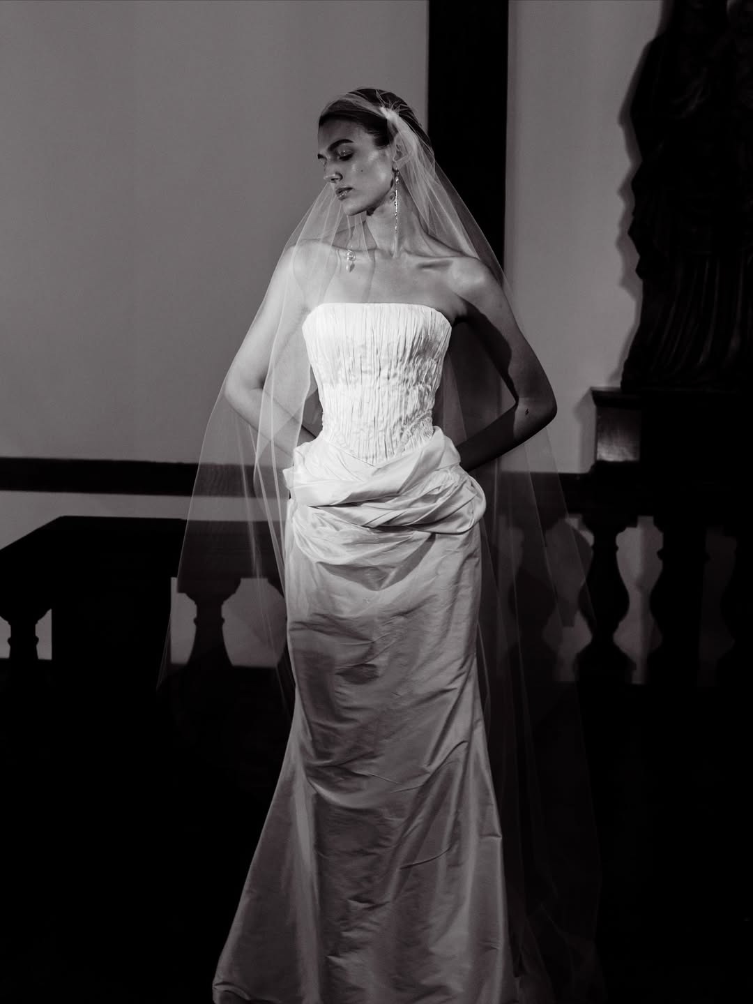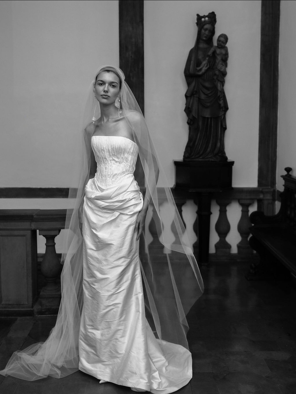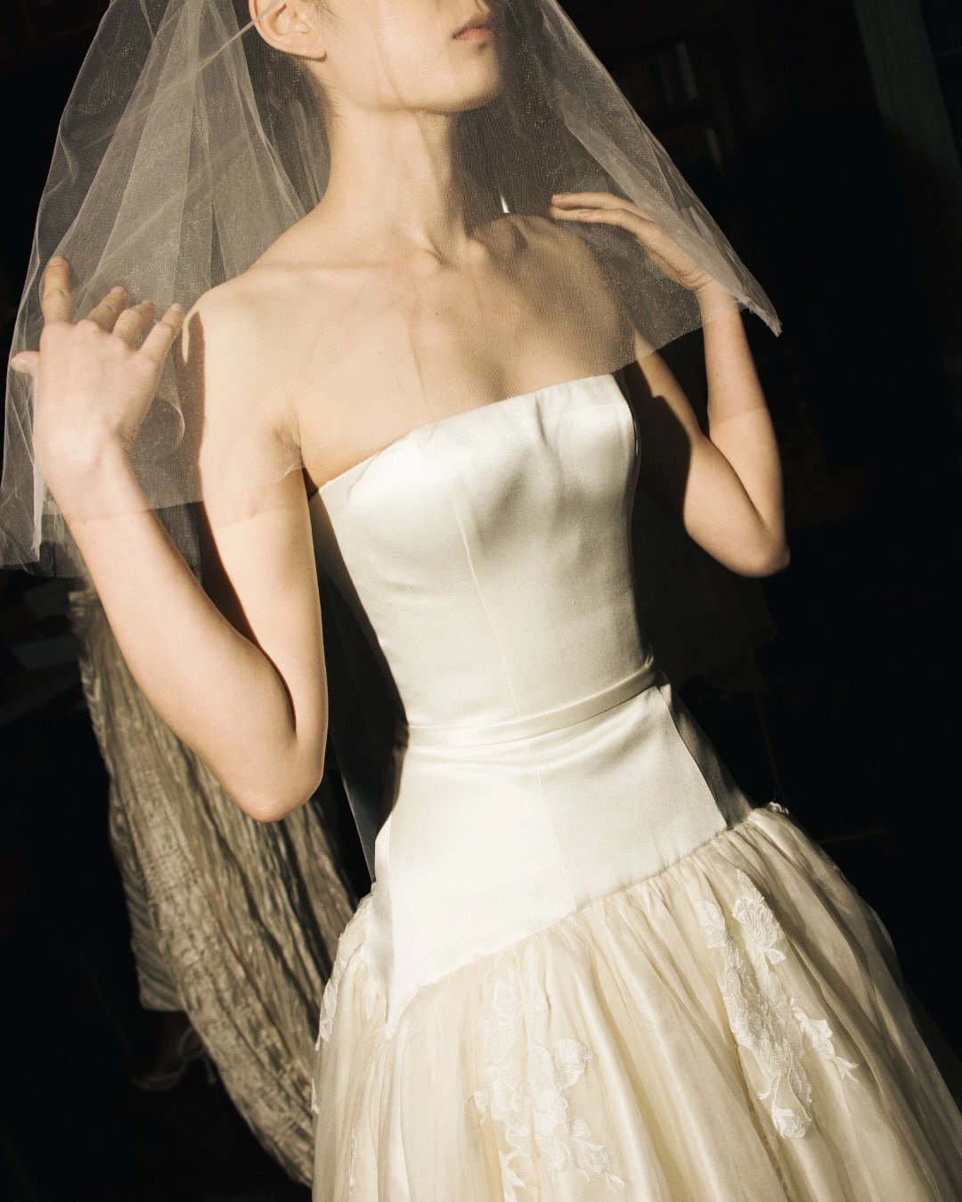 Наряды из весенней коллекции Floure studio были представлены в рамках Недели свадебной моды в Нью-Йорке. Вдохновением для невест, которые готовятся к торжеству в 2026 году, может стать жемчужина показа — модель Davine, сшитая из плиссированного шелкового дупиона и украшенная скульптурным корсетом на тонких бретелях. Всего в капсулу вошло 16 свадебных платьев.